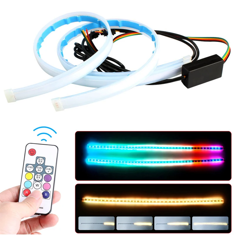 Дневные ходовые огсветильник Niscarda, универсальные, водонепроницаемые, RGB, 2 шт., многоцветные светодиодные ленты DRL, указатели поворота s
