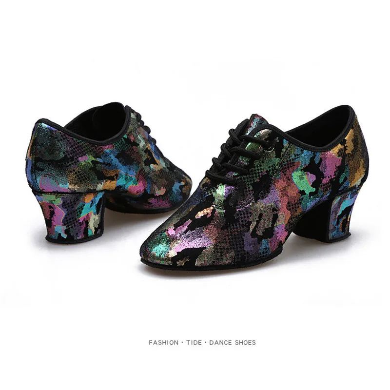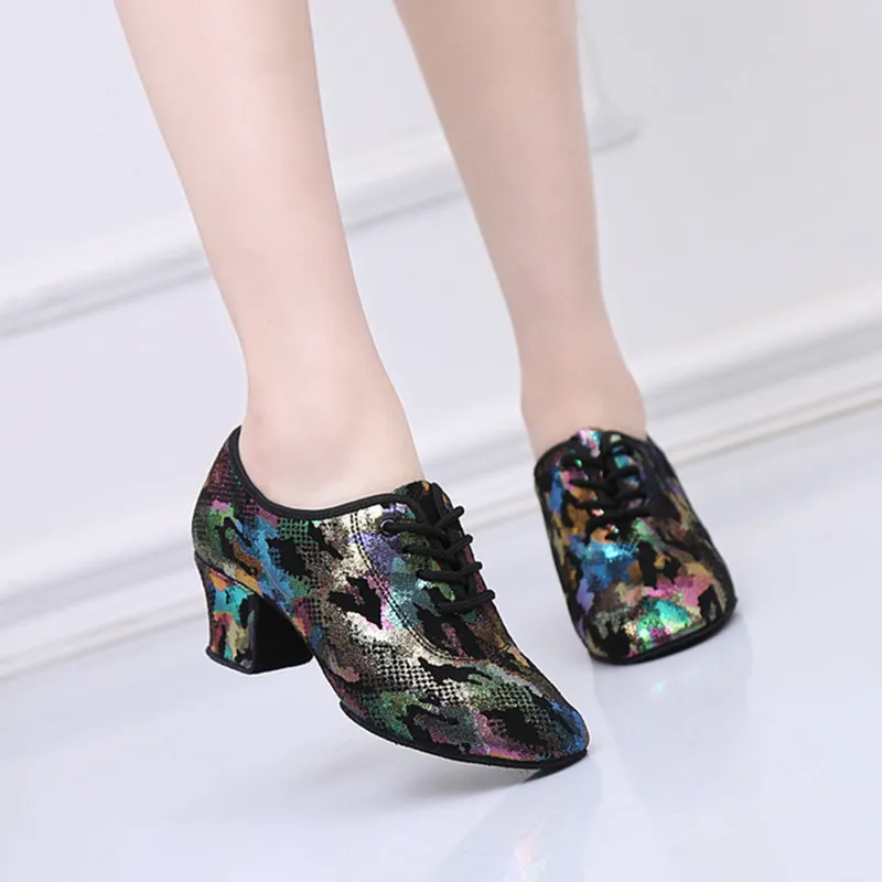 Красочные золотистые кожаные туфли для танцев, женские уличные Мягкие Замшевые кроссовки на массивном каблуке для женщин и девушек, Современные Бальные кроссовки