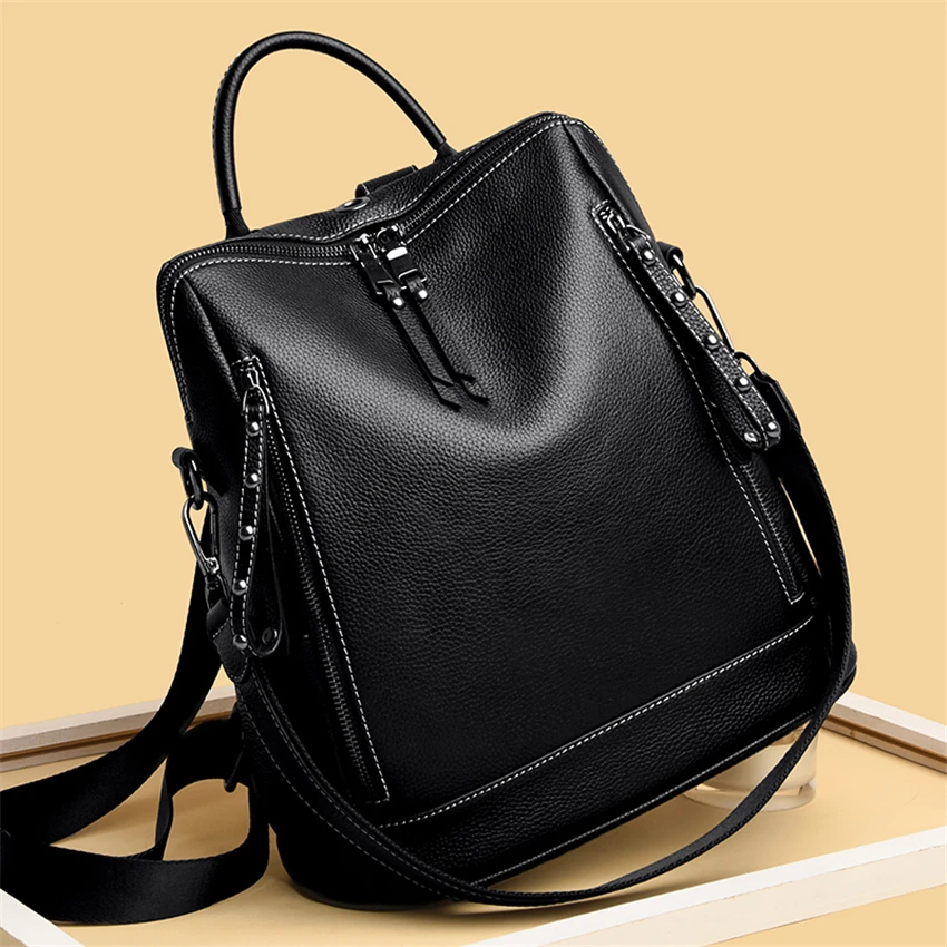 Модные из натуральной кожи рюкзак кожаный рюкзак женский большой Ёмкость школьная сумка простой сумки на плечо для Для женщин Mochila