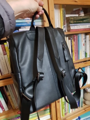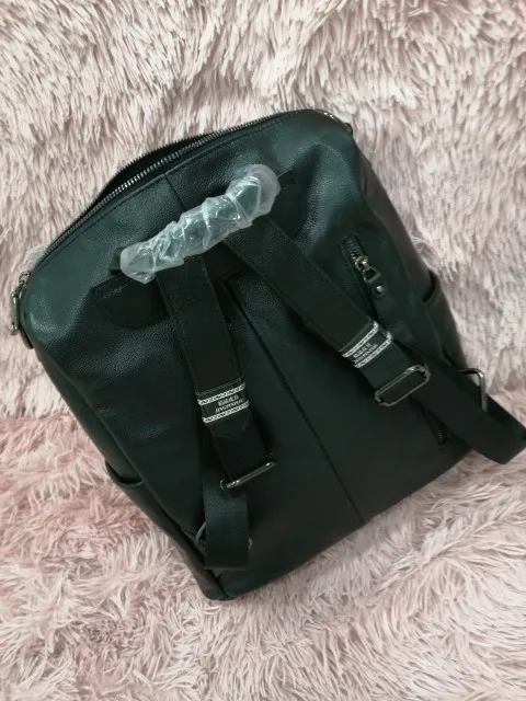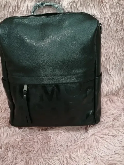 Заказывали два рюкзака, серый и черный, разные модели. Этот черный был с запахом, проветривали на балконе 3 дня. Жена довольна, пользуются каждый день, не много маловат. По материалу не понять кожа или кожзам? Сшит качественно! Покупали за 3200 рублей. Советую к покупке!