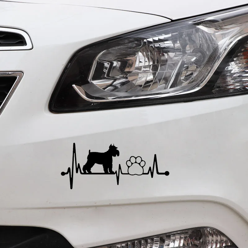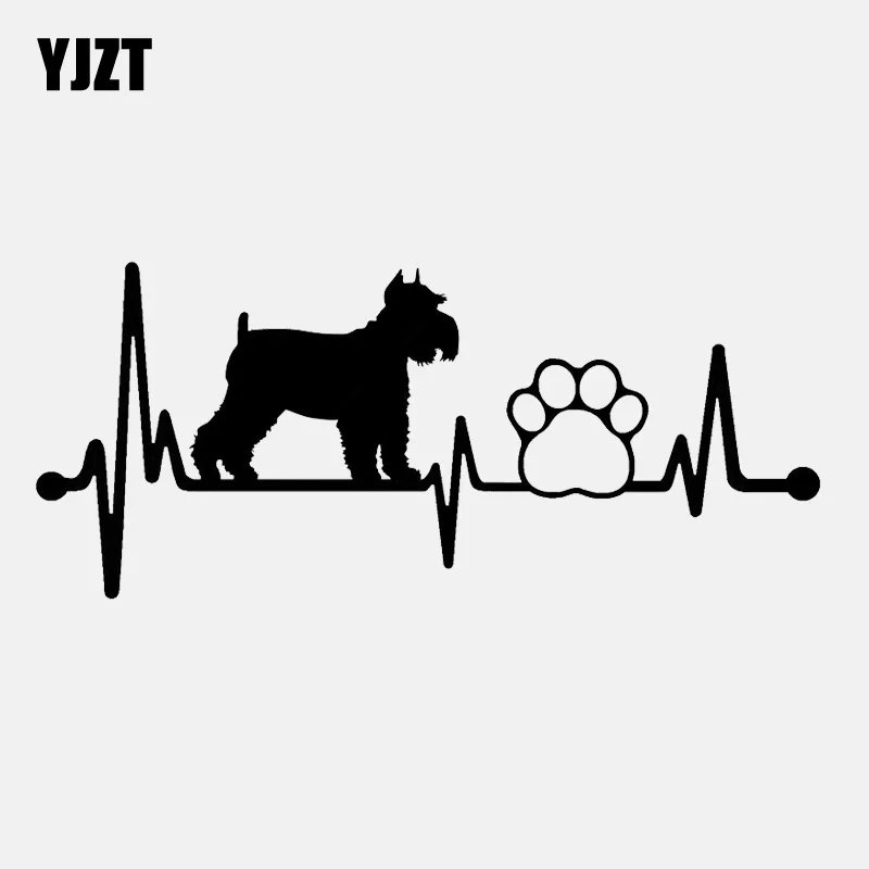 Виниловая наклейка YJZT 15,9 см * 6,8 см, шнауцер, сердцебиение, Рисунок собаки, черныйсеребристый, для мотоцикла, автомобиля, C22-1115