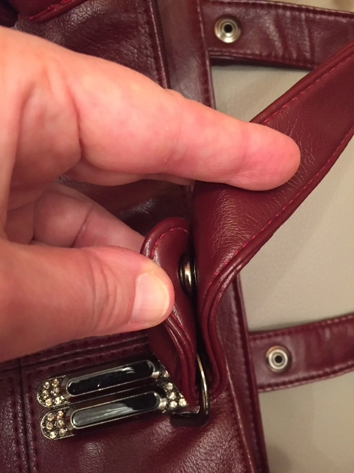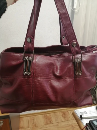 Довольно симпатичная сумка, мягкая, вместительная, не пахнет, доставлена в срок. Но вряд ли это натуральная кожа, впрочем это не важно, тем более за такую цену. Ещё один нюанс: ручки крепятся при помощи кнопок, опасаюсь, что могут расстегнуться при нагрузке, так как одна кнопка слабовата. Не понятно, для чего такое крепление. В целом сумка смотрится хорошо, приятна на ощупь,спасибо продавцу, в подарок была резиночка)))