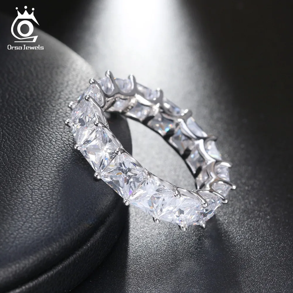 ORSA JEWELS 100% Стерлинговое Серебро 925 пробы кольца для женщин с роскошным AAA кубическим цирконием прозрачное желтое Кристальное серебряное кольцо ювелирные изделия OSR48