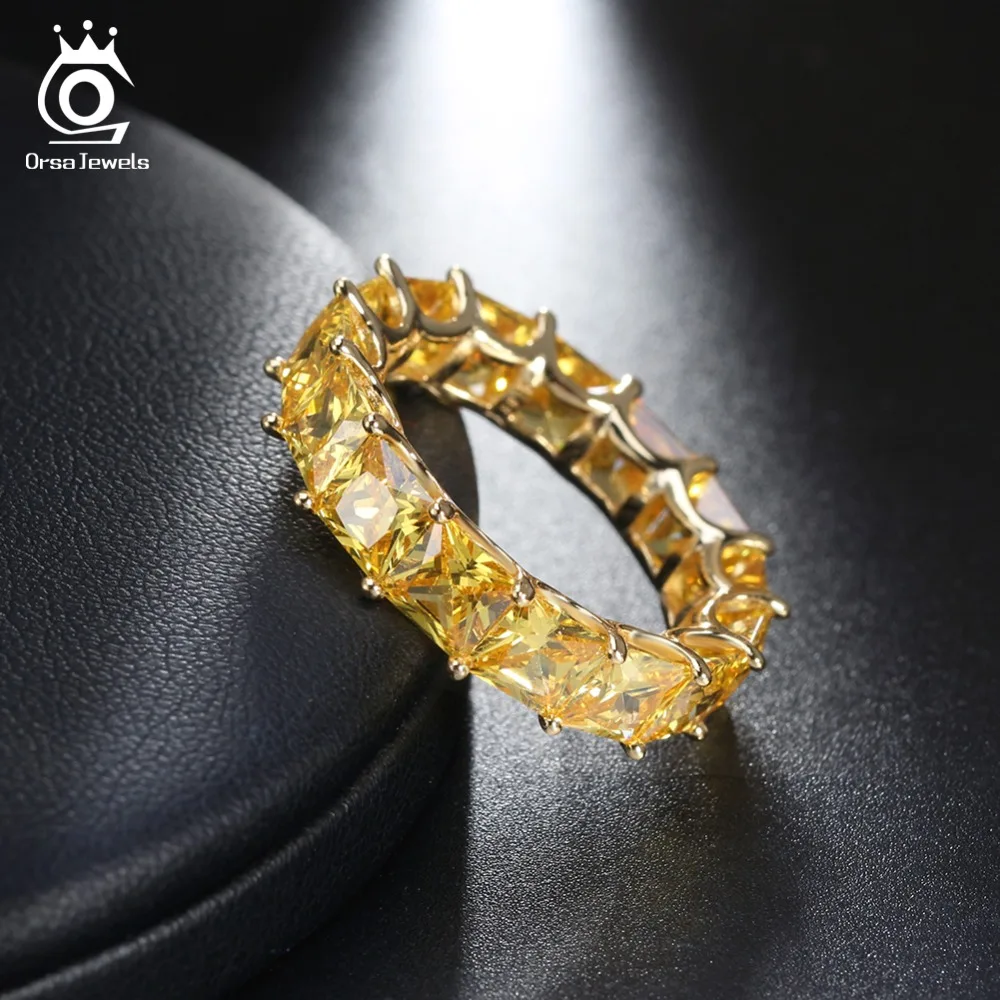 ORSA JEWELS 100% 925 Стерлинговое Серебряные кольца для Для женщин с роскошными AAA кубический циркон прозрачный желтого цвета с украшением в виде кристаллов серебряное кольцо Ювелирное Украшение OSR48