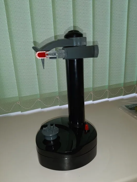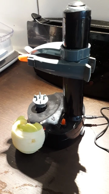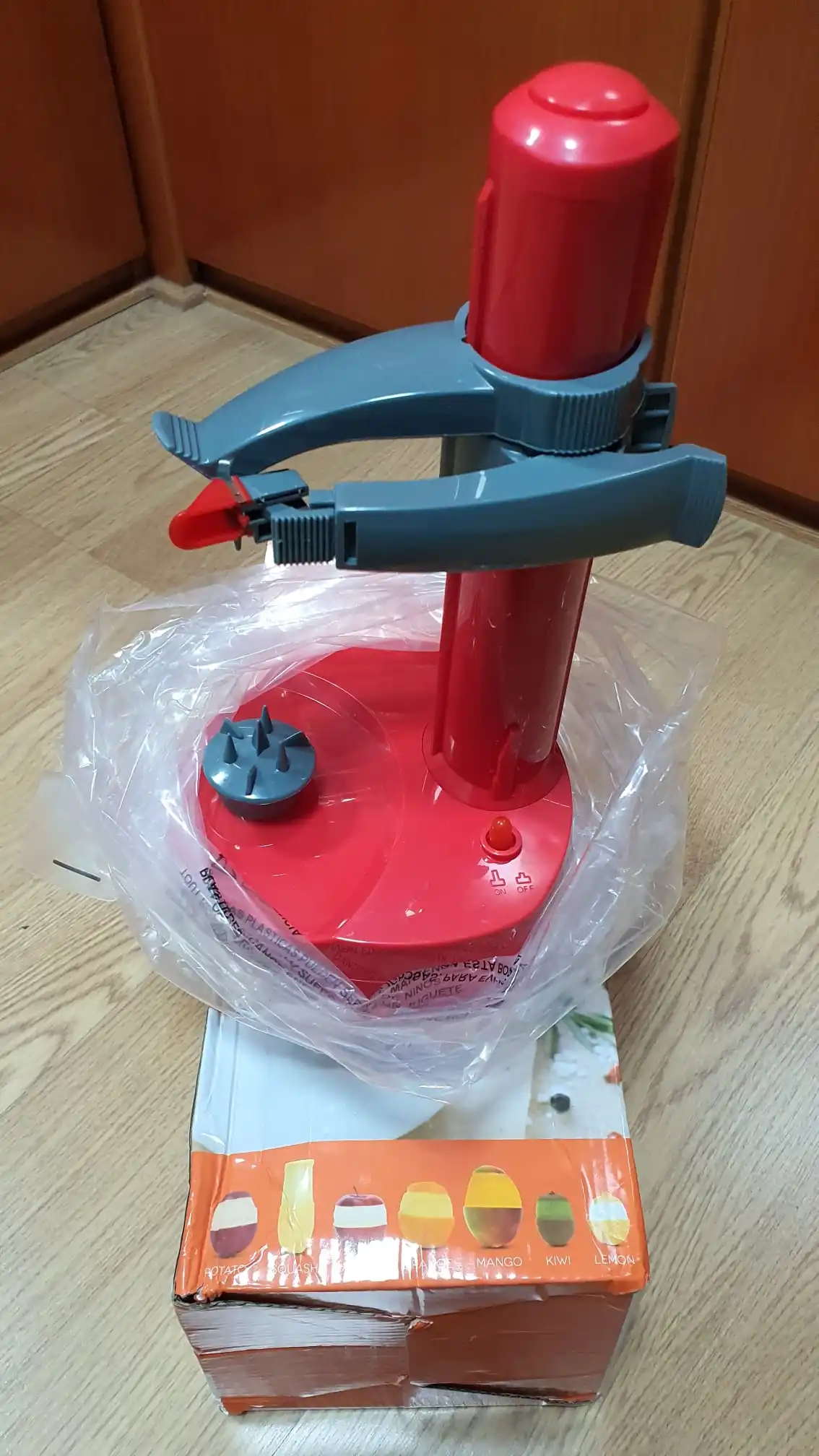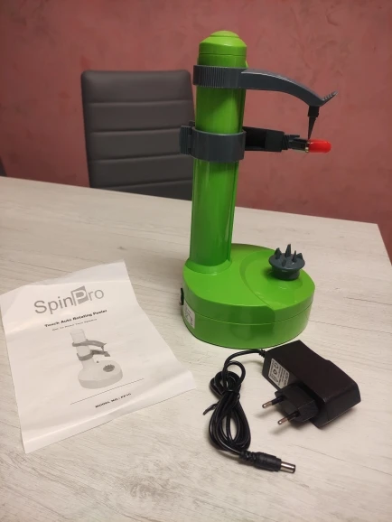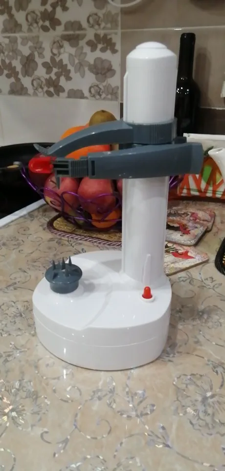 Получил, работает, яблоки чистит. Можно чистить и картошку, но сверху и снизу остаётся кожура, так что надо ли чистить картошку, вопрос. Все конструкции пластиковые, в том числе и штырьки, на которые надевается яблоко, в общем, нежная конструкция, надо пользоваться аккуратно. На большую надёжность и долговечность не рассчитываю. Продавец, по моей просьбе, укомплектовал посылку сетевым адаптером для России. Коробка пришла мятая, но, внутри всё целое. Устройство, как минимум, забавное, поднимает настроение и чистит яблоки. :-)