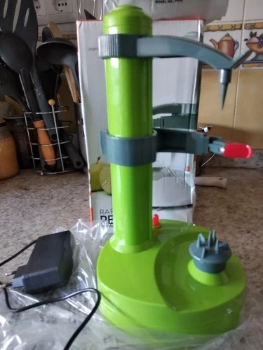 La consegna è stata veloce. Il prodotto è completo di trasformatore e all'interno ci sono anche 2 lame di ricambio. Funziona egregiamente con le mele, ma con le pere non riesce a sbucciare la parte superiore perché la lama non arriva alla frutta. Mentre il kiwi non riesce affatto a sbucciarlo.