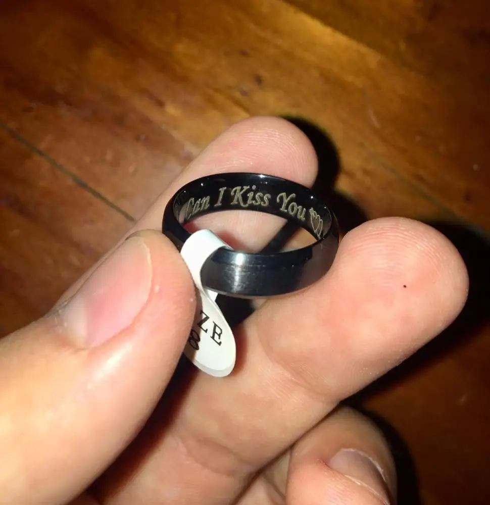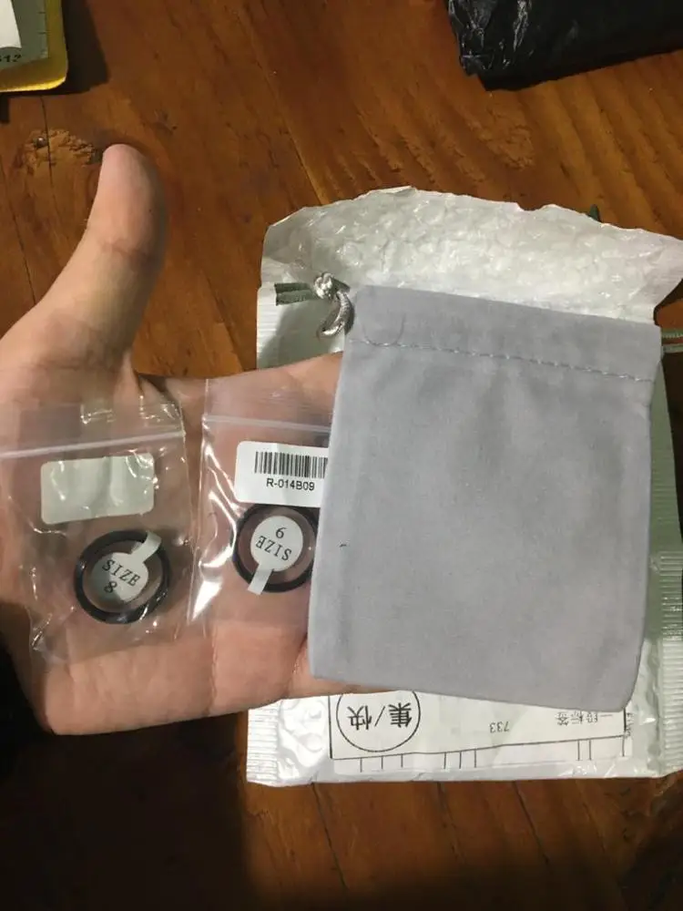 Хорошо упакованы. Размер 8 для меня немного великоват. Я рекомендую измерить размер пальца, как показано на картинке, а затем понизить один размер от показанного, это самое лучшее. На изображении я отправил текст «Могу ли я поцеловать вас?», но они не ставили знак вопросов. Остальное отлично. Спасибо за подарочную сумку, приятный на ощупь. (Я заказал размер 8 и 9)