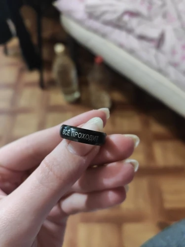 Интересное кольцо, но надпись видно не очень хорошо. Размер чуть великоват. Продавец положил кольцо в красивый мешочек с завязками, очень приятно. Спасибо!