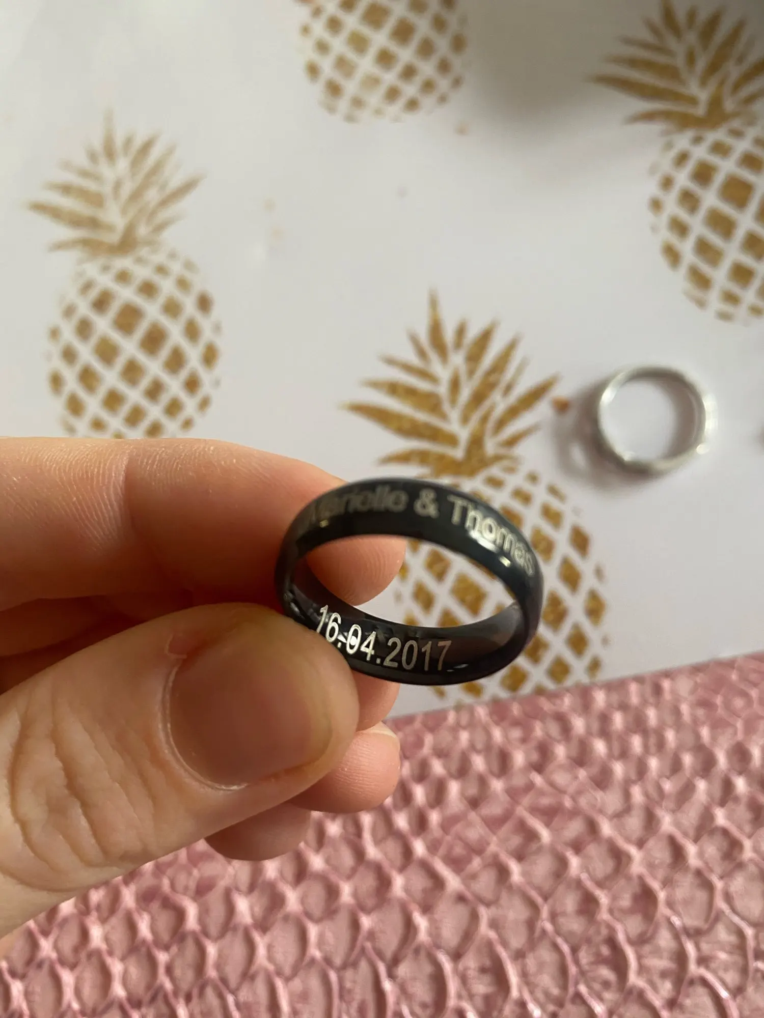 кольцо пришло, все отслеживалось. Надпись вроде как нанесена хорошо и по идее должна продержаться долго. Само кольцо приятное на ощупь, гладкое. С продавцом не разговаривала, но заказ отправили быстро.
