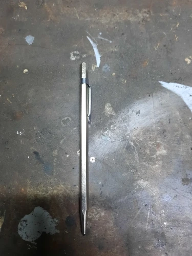 Соответствует описанию. Выглядит как стальная ручка. по мягкому железу царапает хорошо.