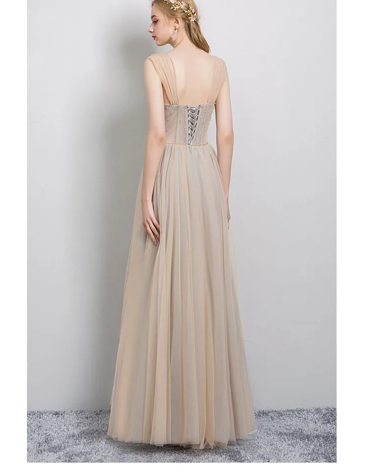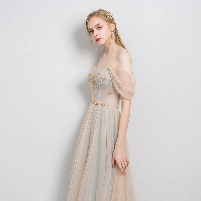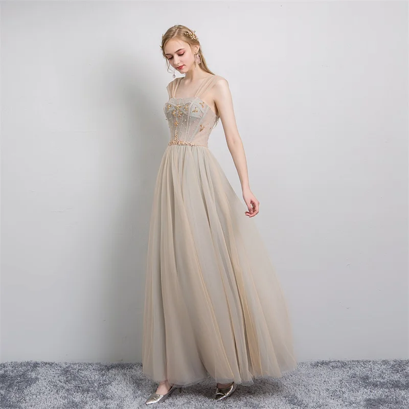 Женское вечернее платье SSYFashion, в пол, с бисером, цвета шампанского, вечернее платье, для банкета