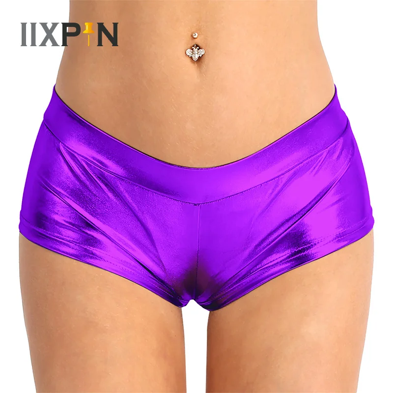 Женские шорты для танцев IIXPIN, сексуальные шорты с металлическим отливом, блестящие танцевальные костюмы из искусственной кожи с низкой талией