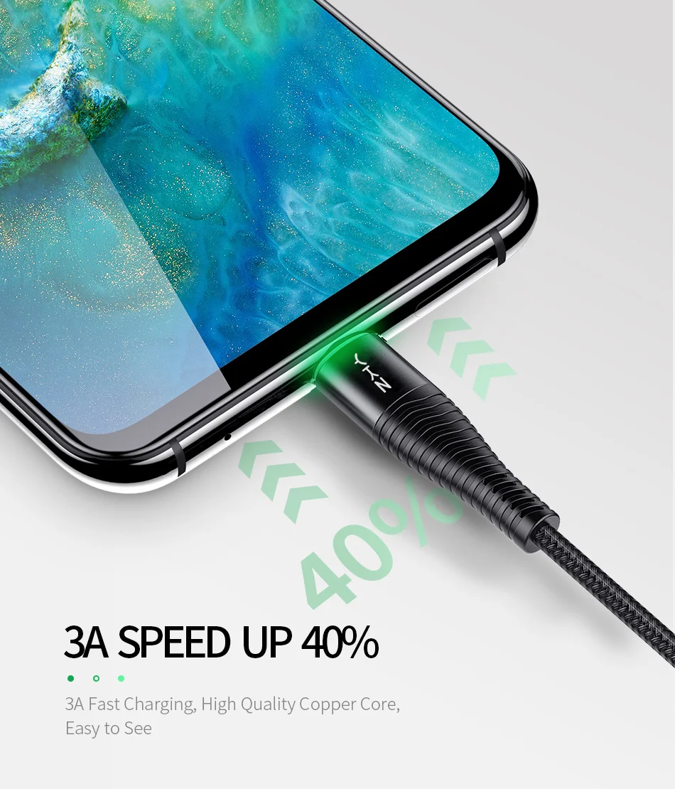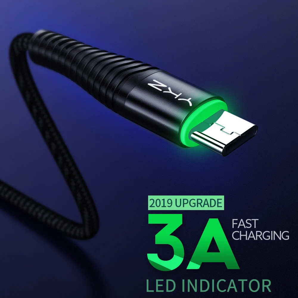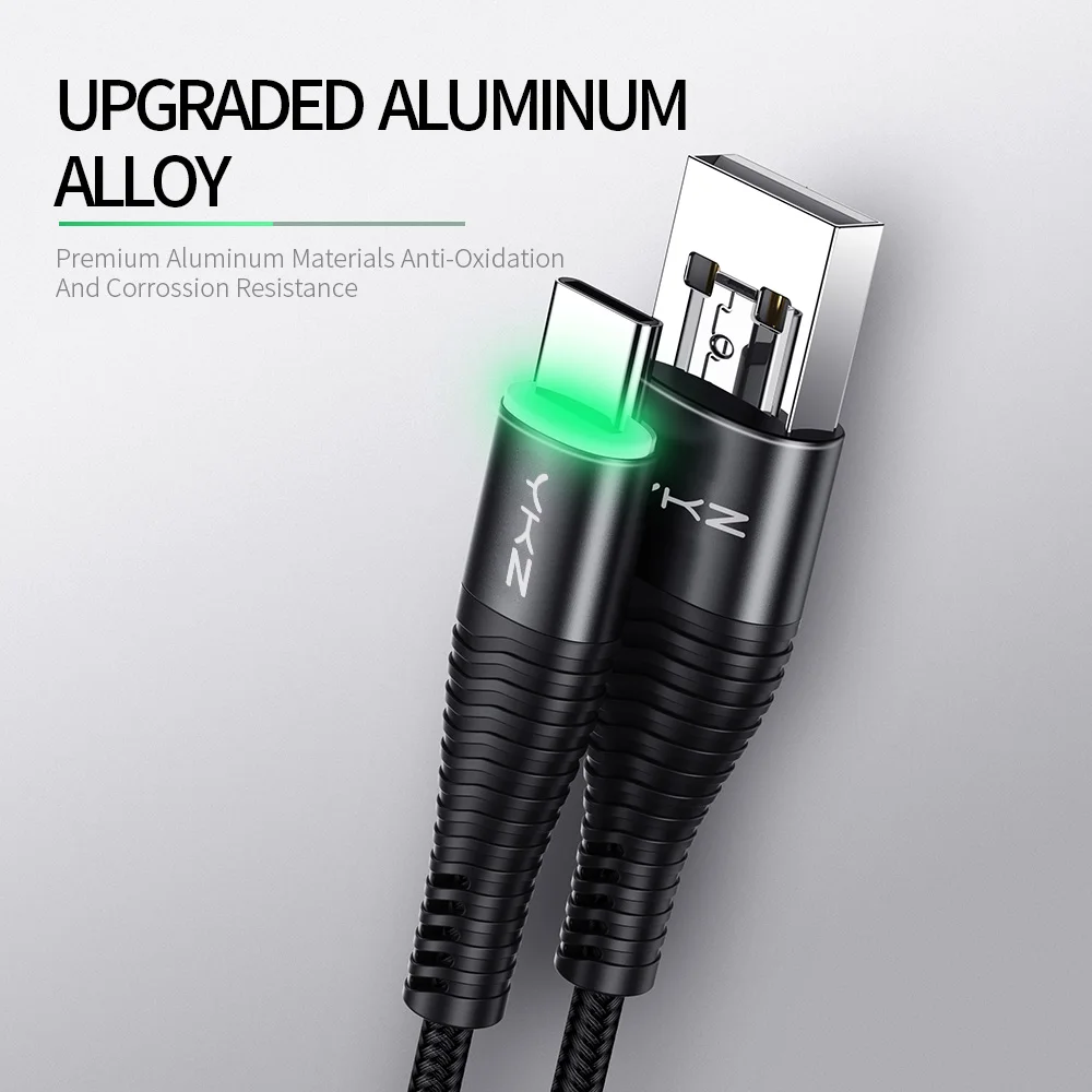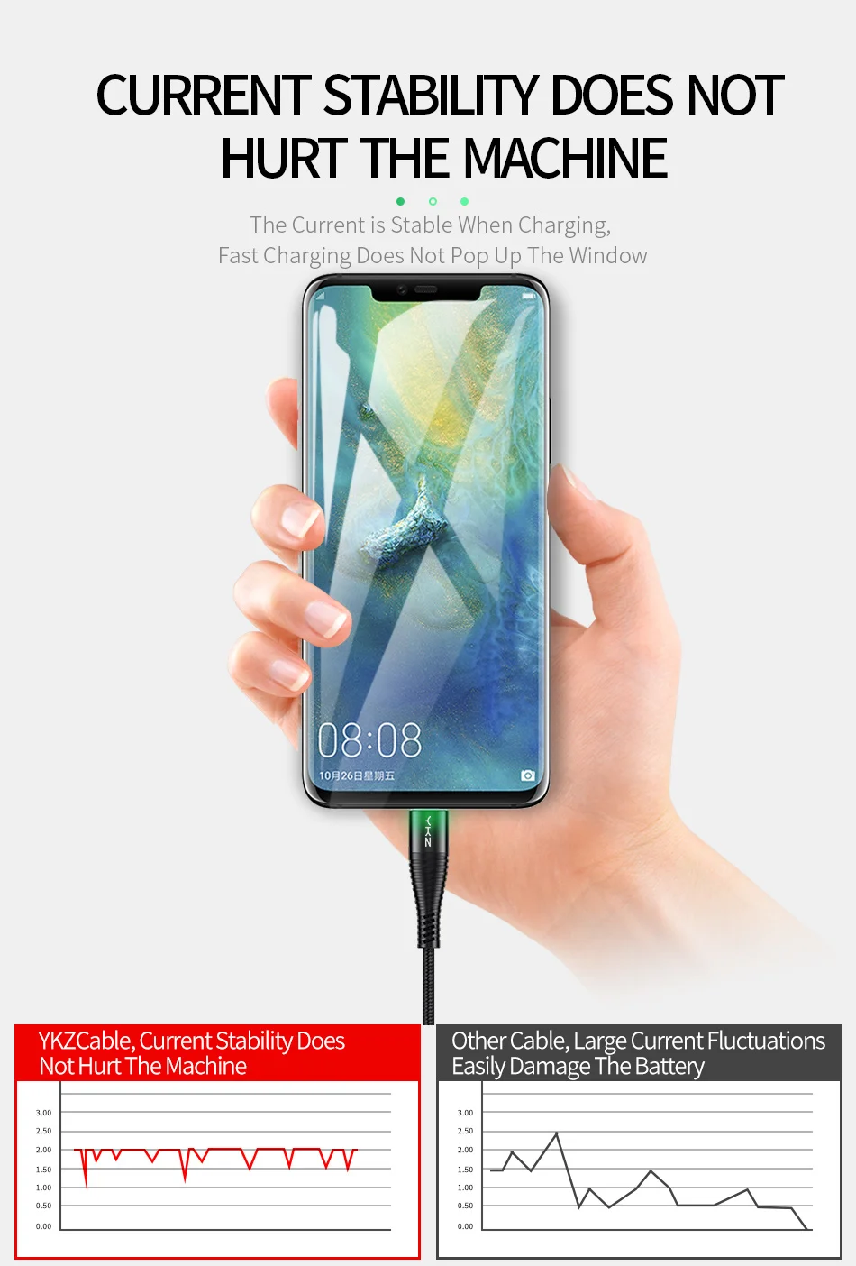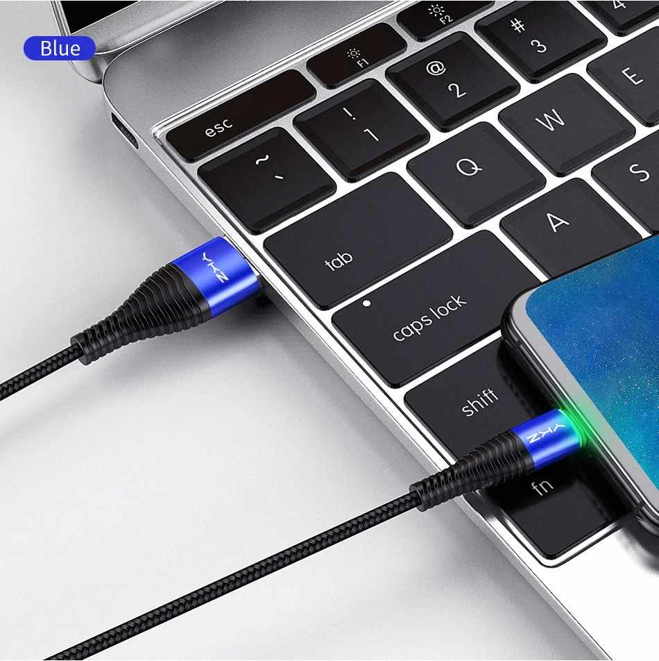Кабель YKZ USB Type-C, светодиодный, 3 А, для быстрой зарядки, USB C, кабель для Samsung S10, Xiaomi mi9, HUAWEI, USBC, Type-c, кабель для передачи данных, кабель для зарядки и зарядки, 1,8 м