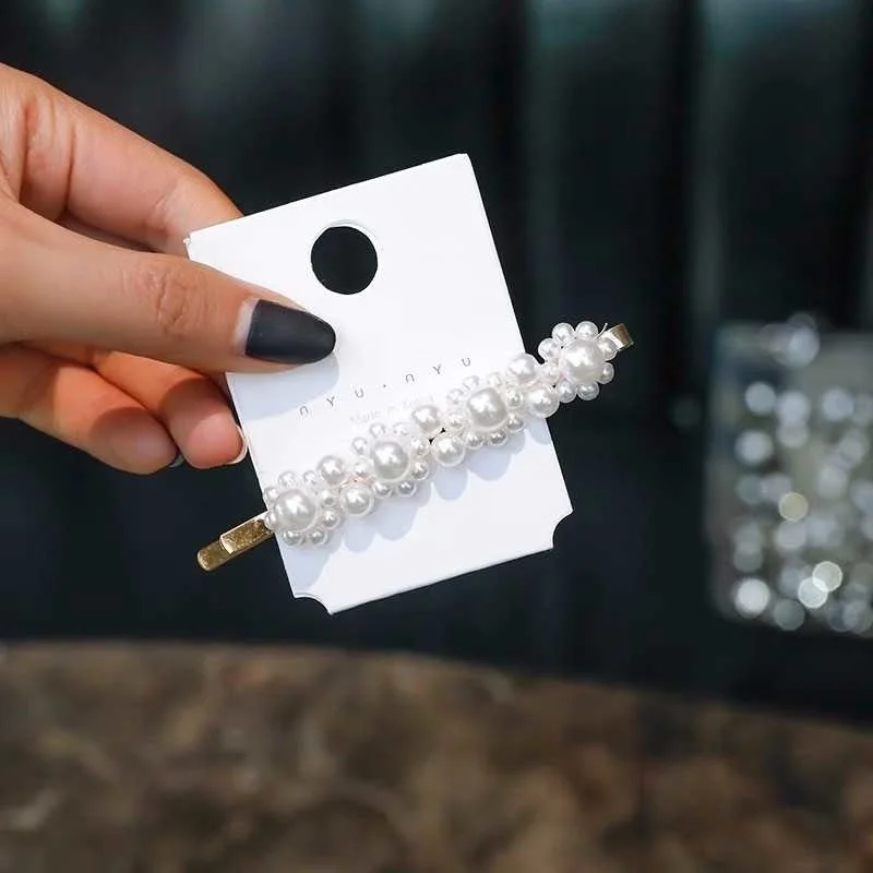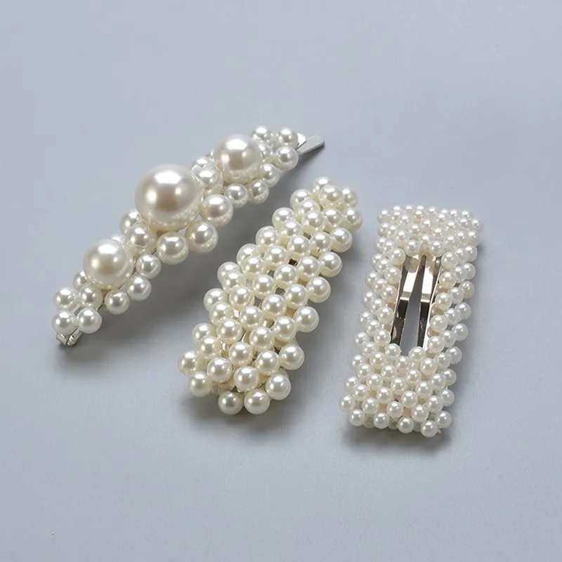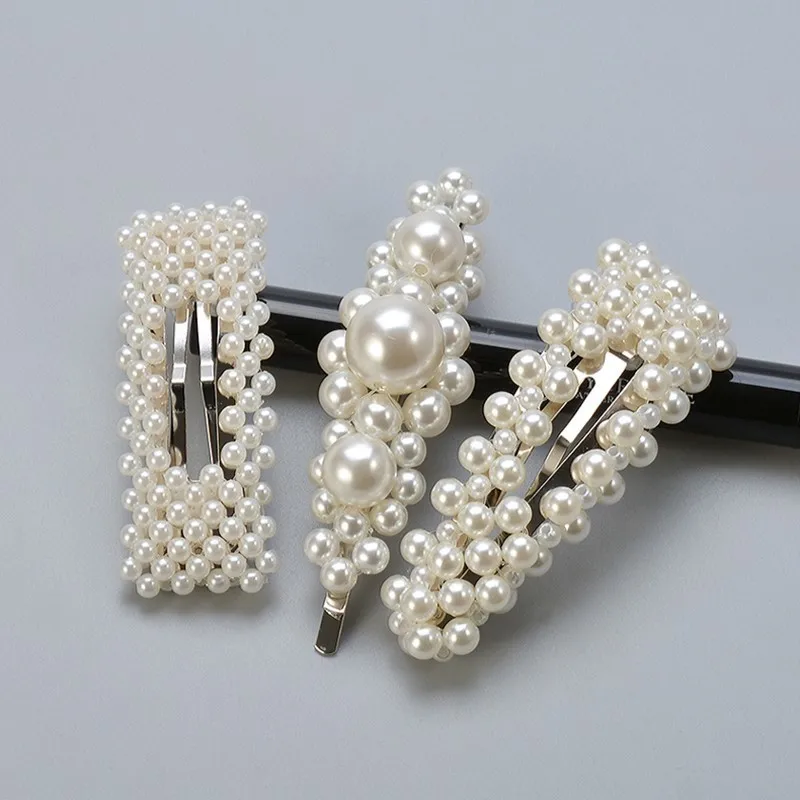 Женские заколки для волос с искусственным жемчугом, корейские геометрические заколки для волос с бусинами, аксессуары для волос, бижутерия для девочек, модные заколки для волос