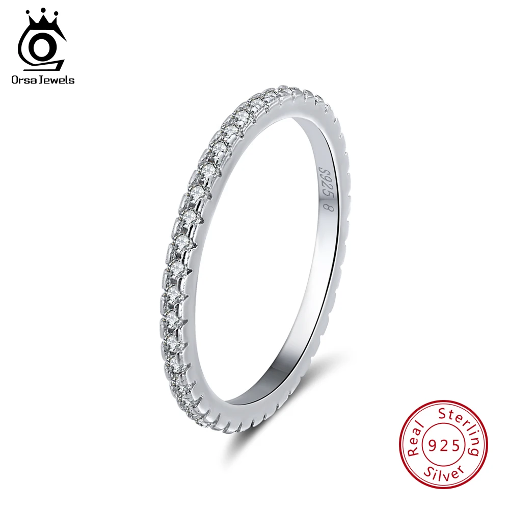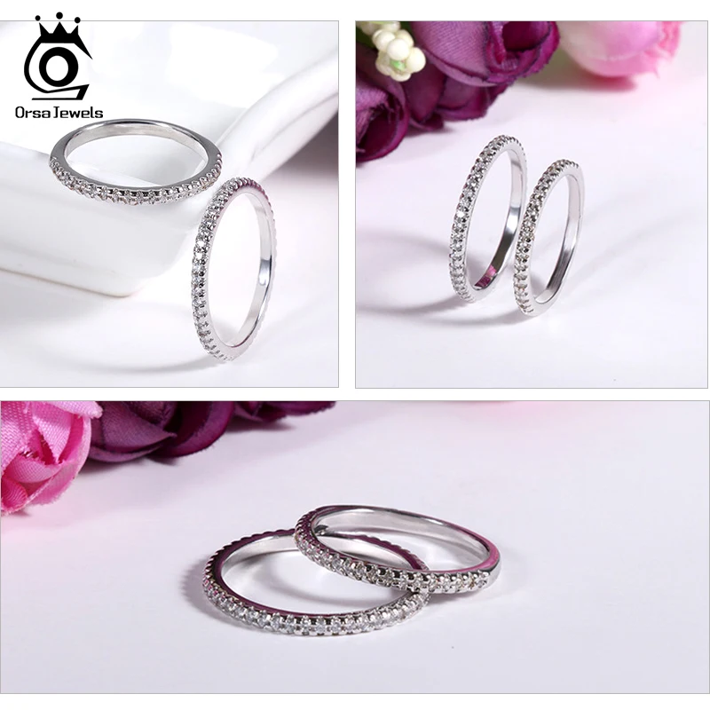 ORSA JEWELS Настоящее серебро 925 пробы кольца для женщин Свадебные украшения с блестящим AAA кубическим цирконием маленькое корейское кольцо подарок OSR63