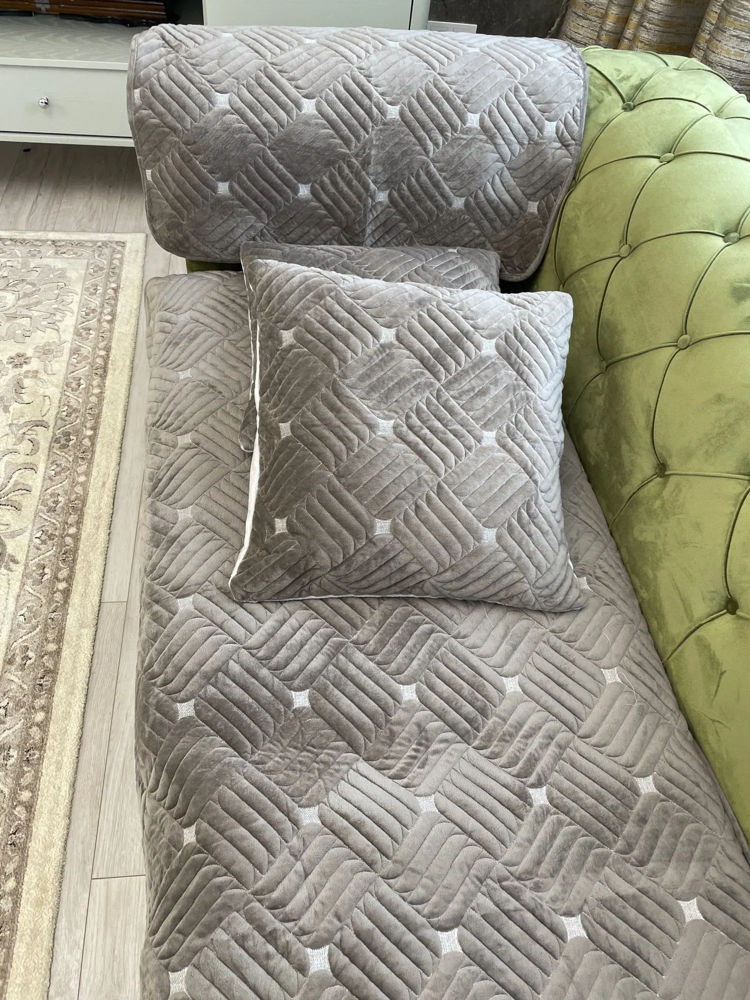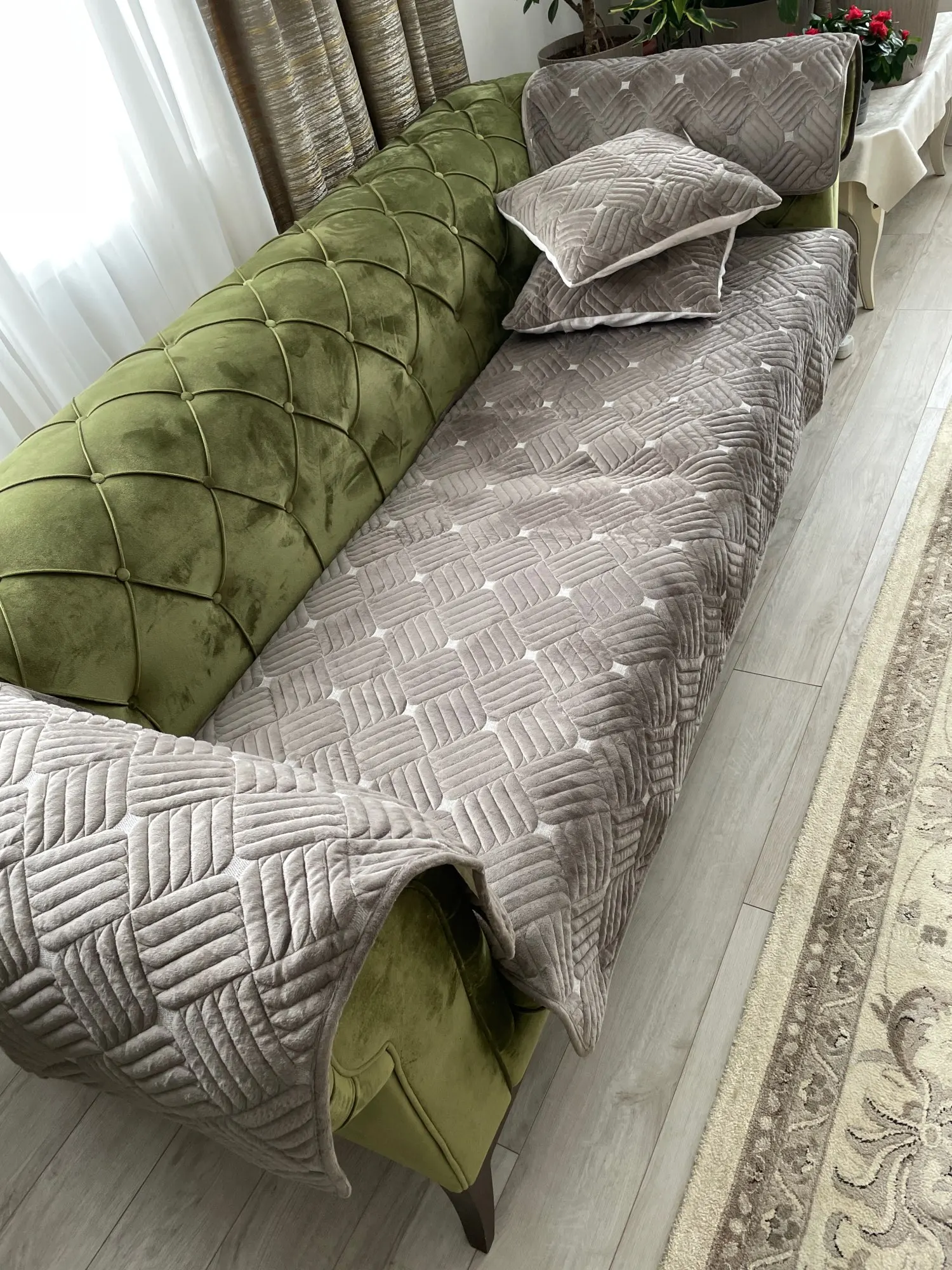 Я очень довольна качеством чехлов. Приятная на ощупь поверхность и с прорезиненными пупырками с низу, которые не дают скользить по дивану. Цвет тоже соответствует заявленному. Товар и продавца рекомендую.