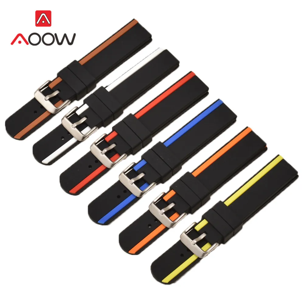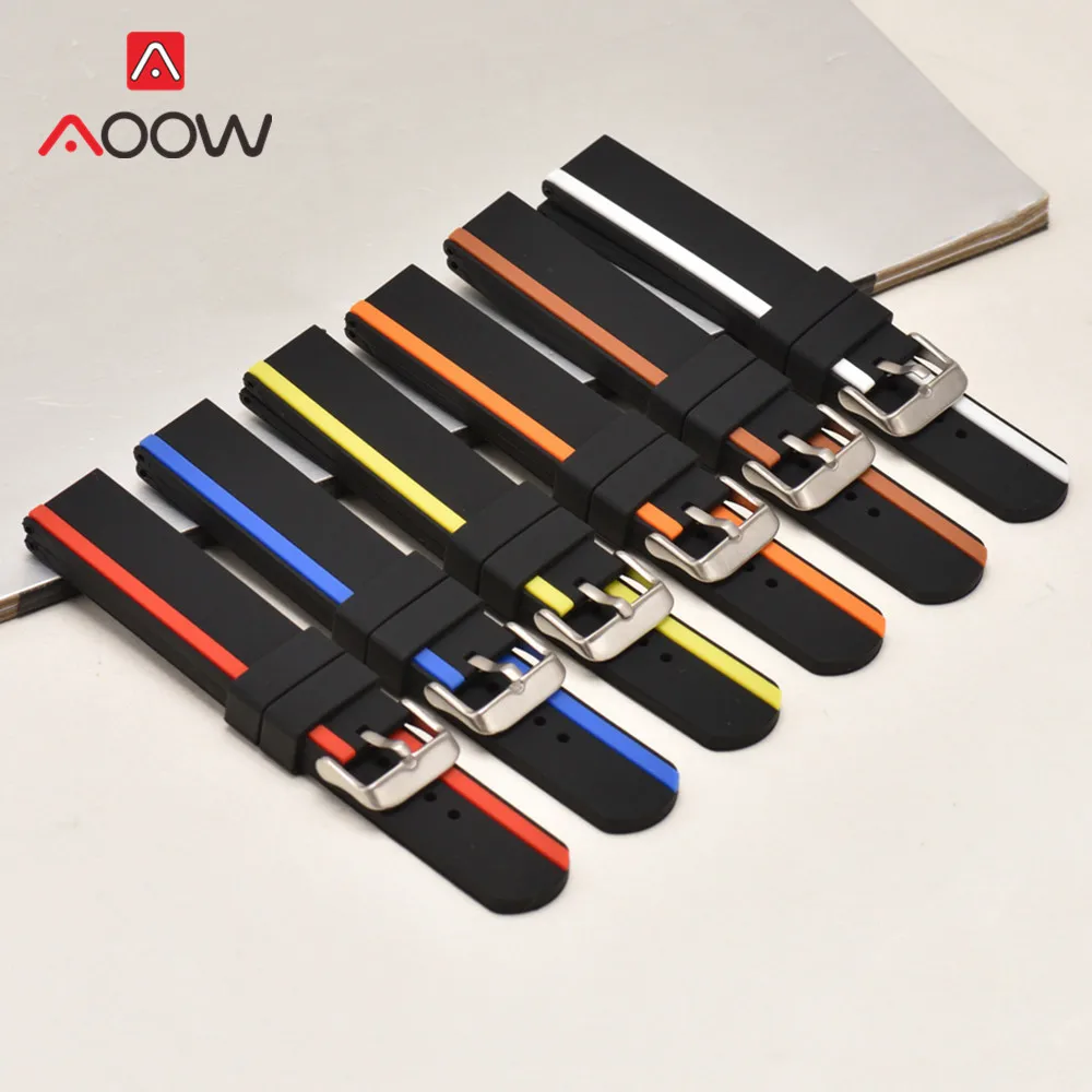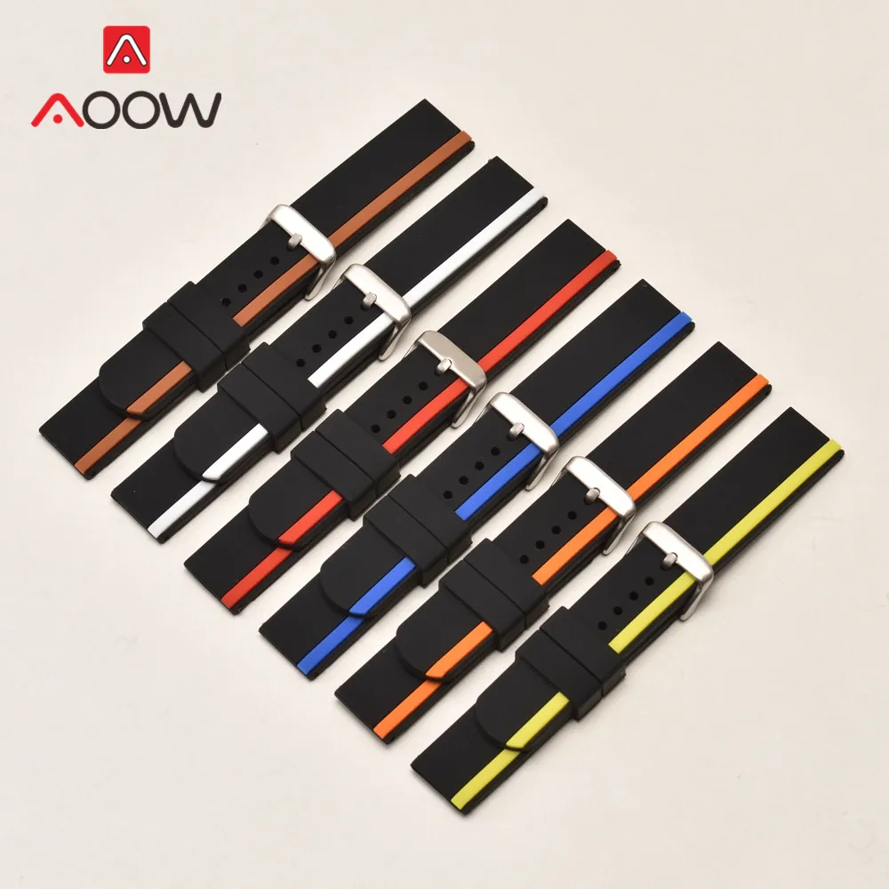 Силиконовый ремешок для часов 20 мм 22 мм 24 мм, резиновый ремешок для мужчин и женщин, спортивный водонепроницаемый браслет, аксессуары для часов, Пряжка из нержавеющей стали