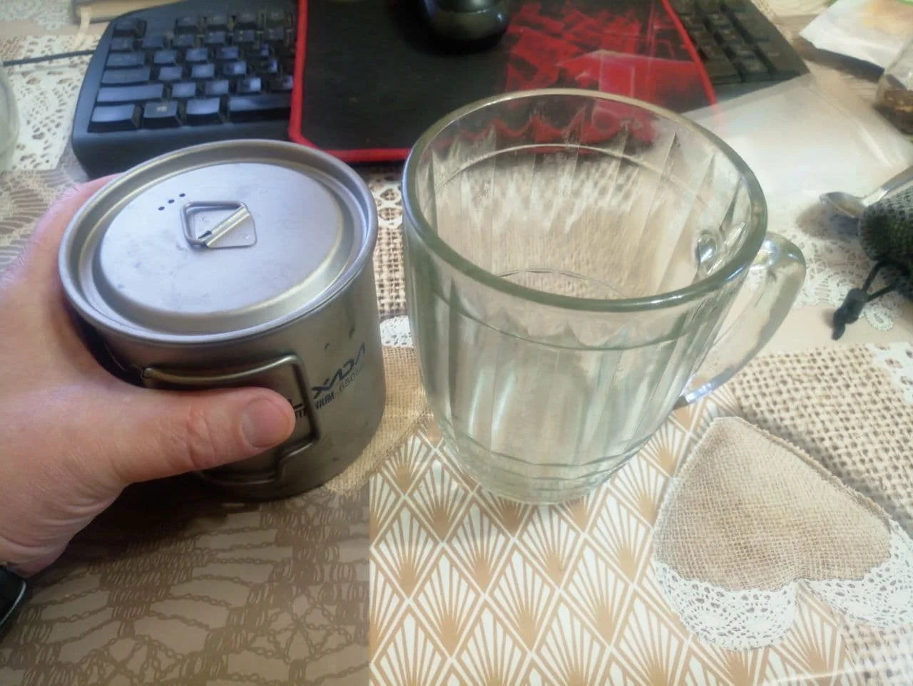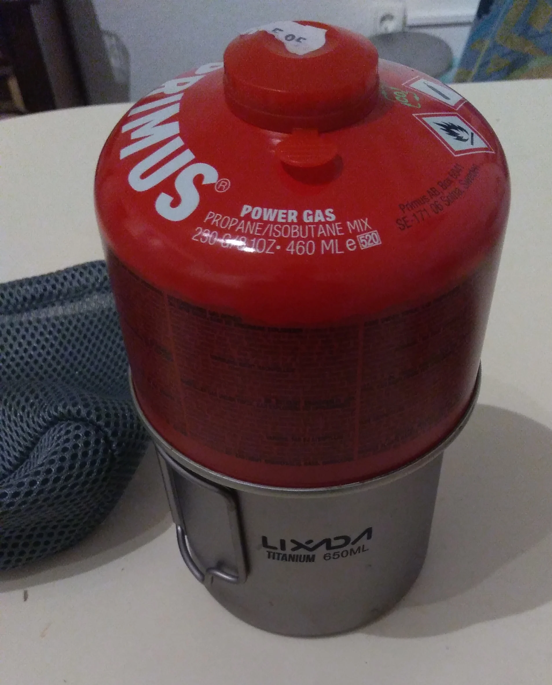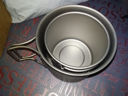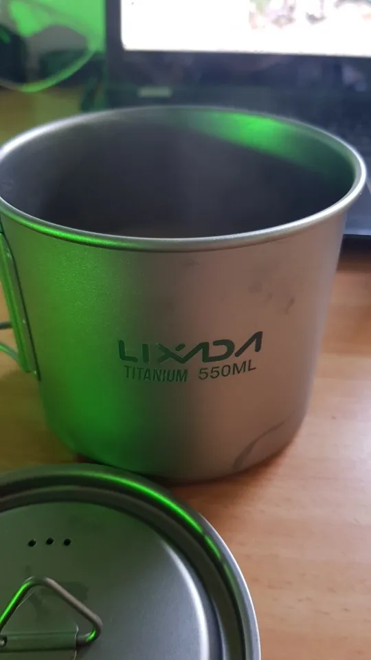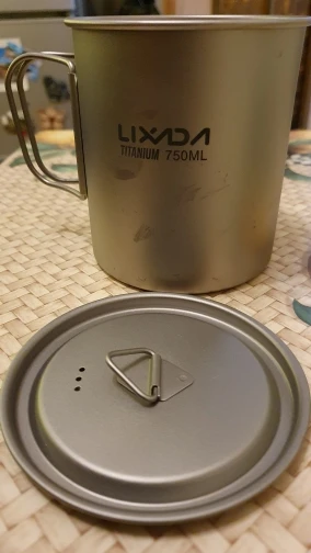 Компактный и легкий, соответствует описанию. Вес (с крышкой) составляет 125 г. Кажется, сделан из настоящего титана (я сделал измерение плотности). До верха 750 мл, но максимальное удобство использования составляет ~ 600-650 мл. Имеет довольно точные градационные отметки на 200, 300, 400 и 500 мл. Крышка хорошо удерживает и имеет удобную ручку крышки. Сетчатый мешок идеально подходит и помогает лучше закрепить крышку. Внутри может поместиться тонкая (!) газовая канистра (на рисунке вы можете увидеть вставленную газовую канистра 240 г). Нагревается и быстро остывает. Самым большим недостатком является волнение, погремушка и шумные ручки. Что касается спортивной одежды, то она, как и ожидалось, но ручка изготовлена из стали. Удобно использовать с горшком такого размера. Доставили очень быстро и были хорошо упакованы. В целом-качественный материал и хорошее соотношение цены и качества. Доволен покупкой. Настоятельно рекомендуется.
