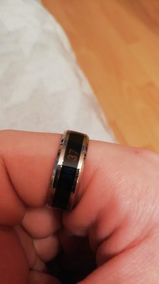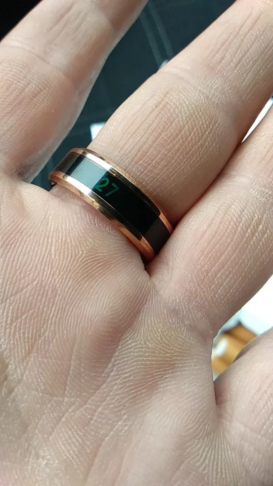 Заказ пришёл в Москву меньше месяца. Колечко и правда измеряет температуру, постепенно) у меня начал с 33 градусов и до 36) Необычное кольцо за столь скромные деньги)) И заодно температуру померить можно :)
