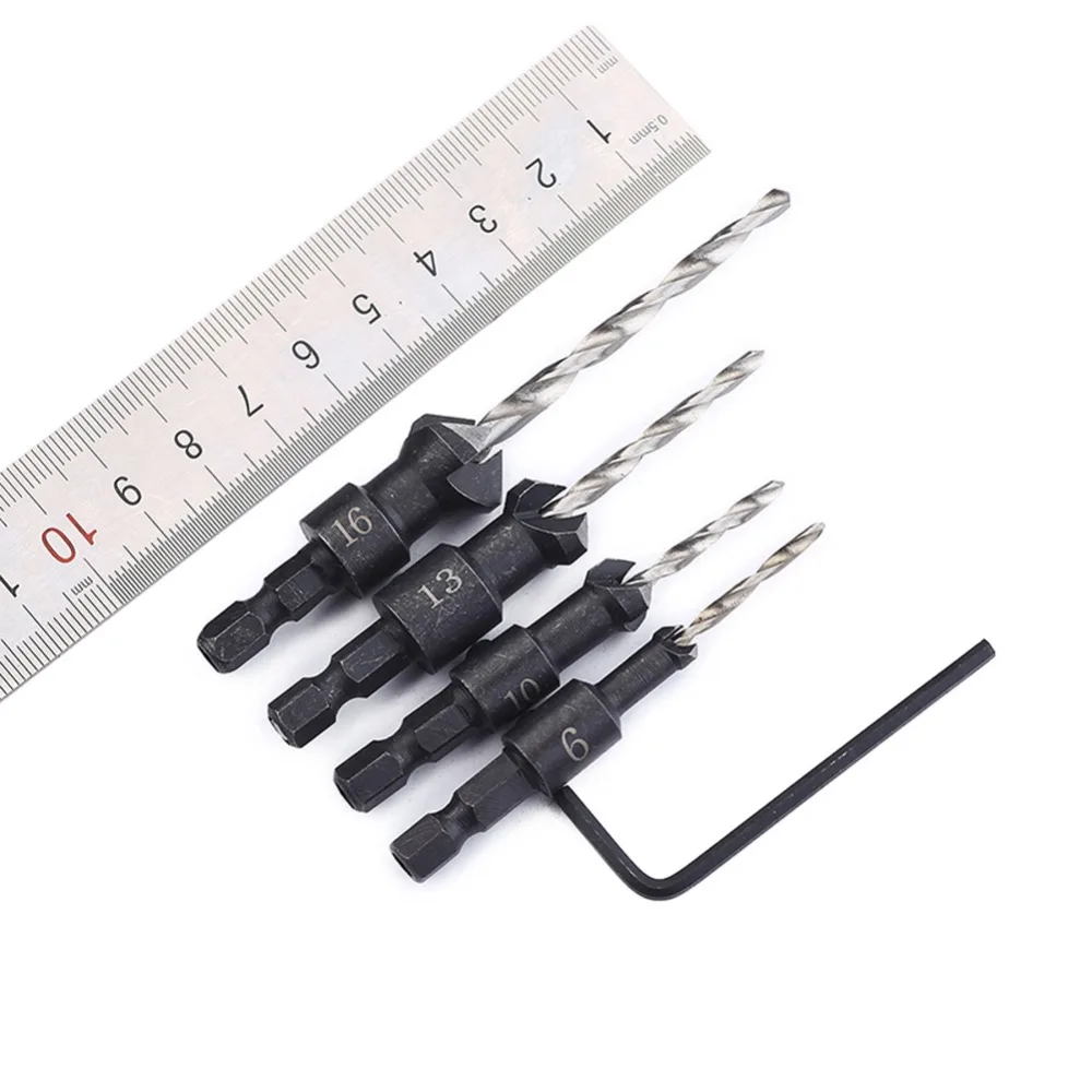 4 шт.компл. HSS 4241 винт зенковки набор сверл быстрое изменение шестигранный хвостовик #6 #10 #13 #16 фаски сверла резьба по дереву инструменты B2