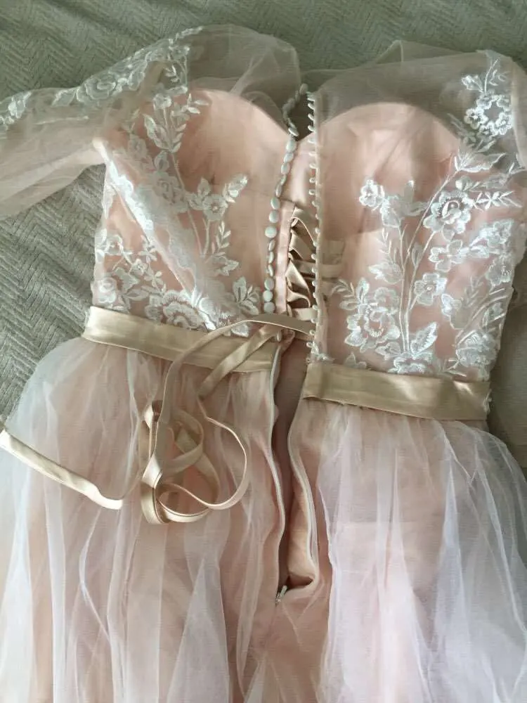 Я могу звать себя чрезвычайно рискованным человеком. Мой первый заказ с aliexpress и сразу же свадебное платье. Продавец очень дружелюбный. Он был изготовлен около недели. Доставка в течение 17 дней. Невероятно красивое платье. Точно так же, как на картинке. Сшито по собственным стандартам (рост 178, сидит идеально). Цвет как пыльно-розовый. Корсет на спине, топ на пуговицах. Небольшой поезд. Заказывайте и даже не сомневайтесь! В подарок Положите серьги)