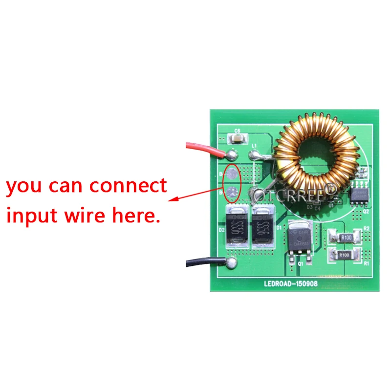 (Примечание: Красный провод является положительным, а синий провод отрицательным, оба могут прикрепить к светодиоду. На задней стороне, внутри круга, то окажется, что они являются положительными для источника питания; Они завернуты в circel, это негативный для источника питания.)