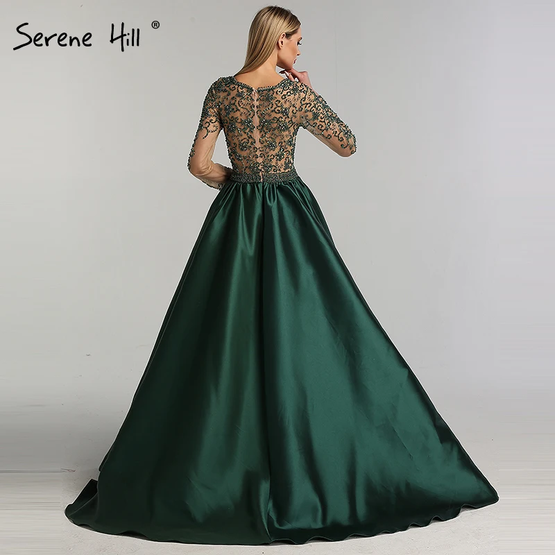 Зеленые атласные длинные платья с v-образным вырезом Вечерние Длинные рукава Жемчуг Бисероплетение вечерних платьев 2021 Serene Hill LA6312