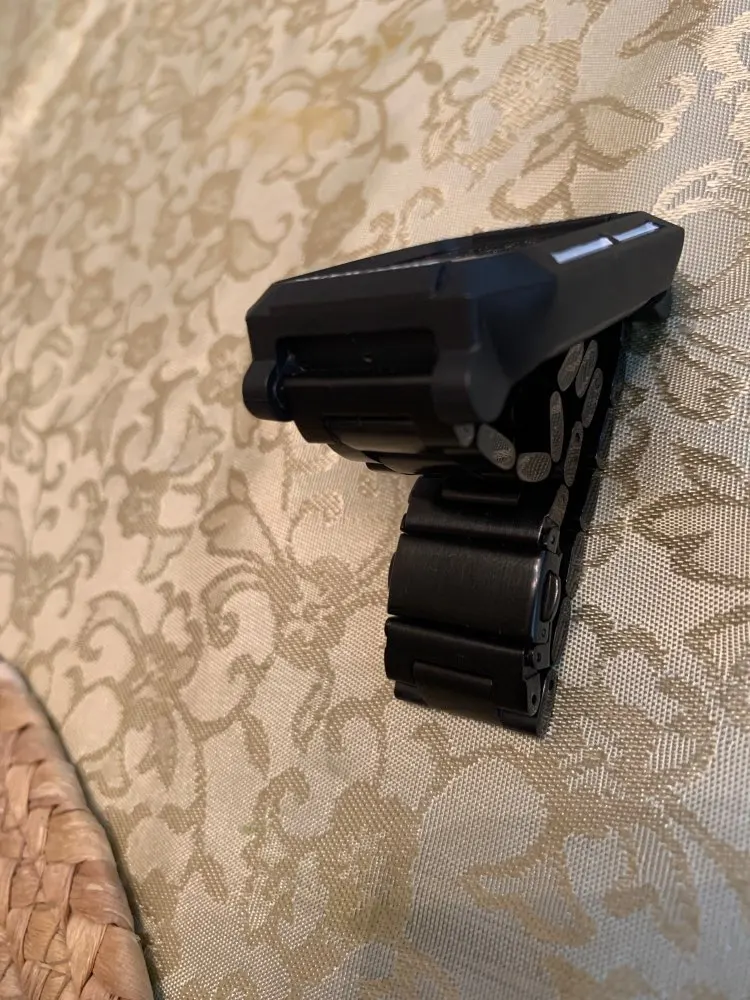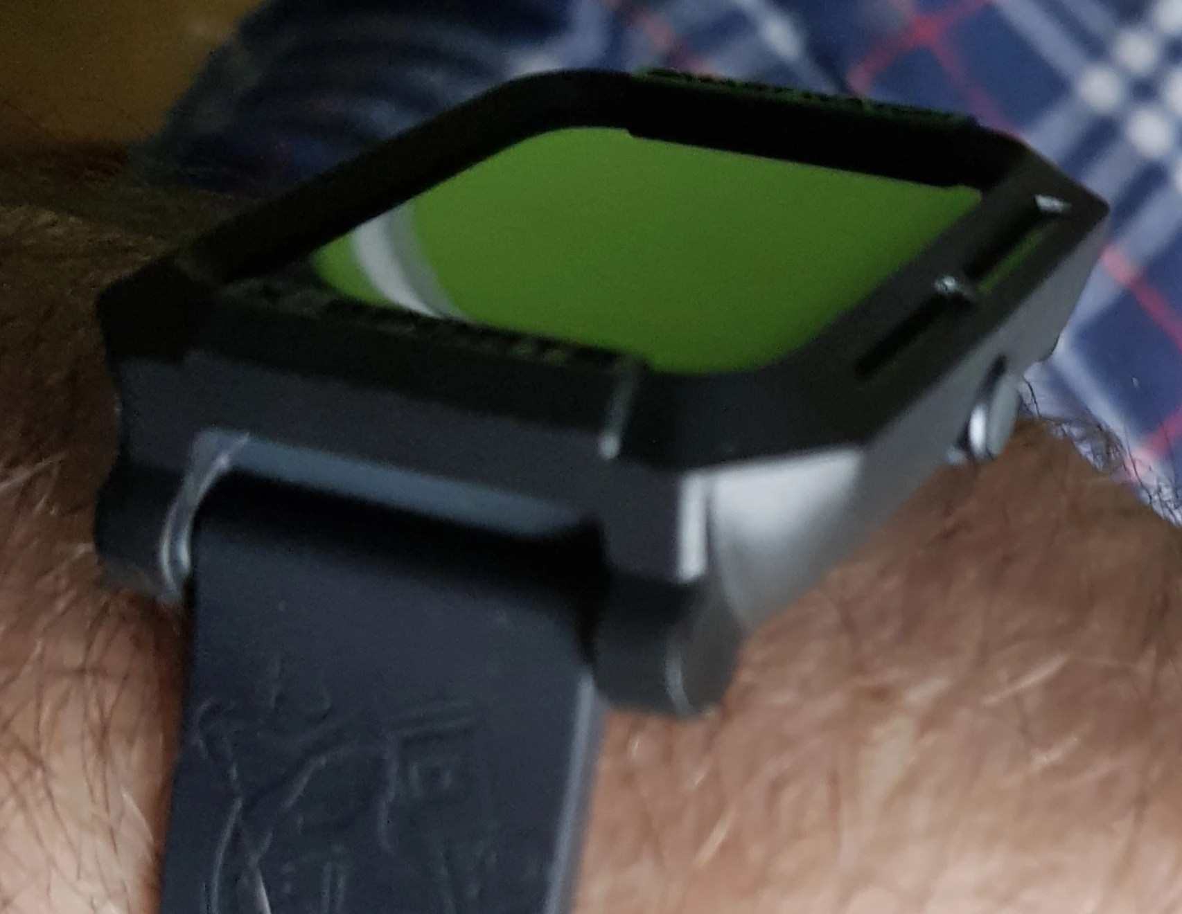 Хороший ремешок, эластичный и красивый. Практически исчезли случайные нажатия на кнопку при сгибание запястья (со штатным жёстким ремешком кнопка нажималась очень часто)