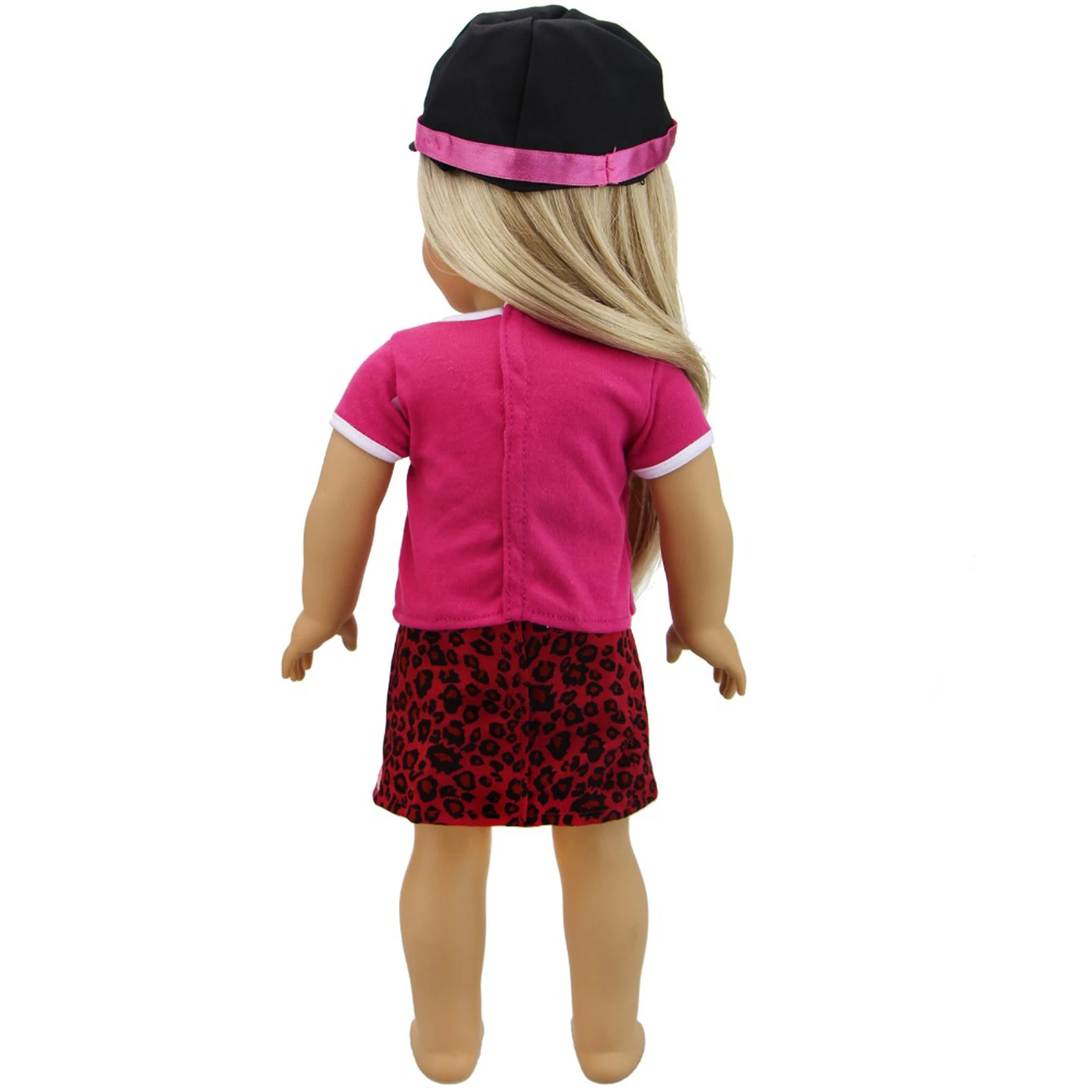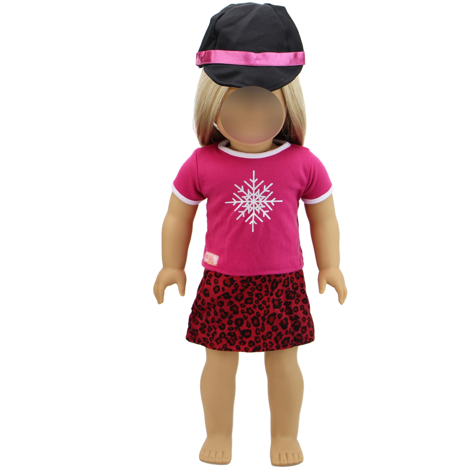 Платье ручной работы, розовая одежда, черная бандажная шапка, футболка с рисунком снежинок, юбка с леопардовым принтом, аксессуары для одежды для 18-дюймовой куклы для девочки