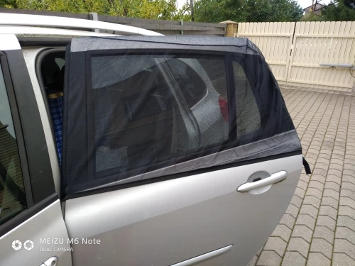 Прекрасное решение не только для защиты от солнца, но и как защита он вездесущих насекомых летом на пикнике. Сетка растягивается с запасом, на двери кроссовера одевается легко. насколько все это долговечно узнаем позже.