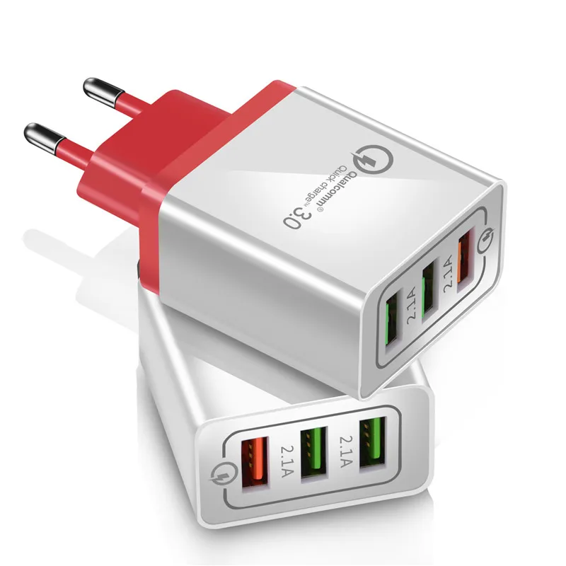 Домашний дорожный адаптер для быстрой зарядки мобильного телефона с 3 портами USB и быстрой зарядкой QC 3,0