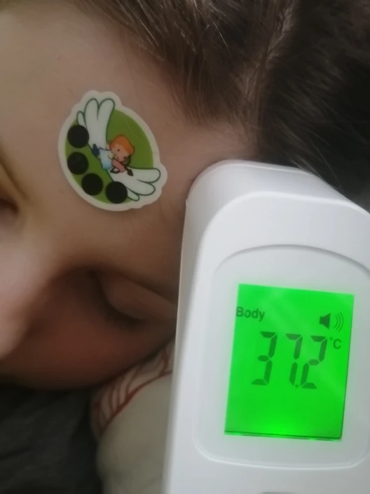 наклейки работают! сверить точность с обычным термометром не получилось- малышка не дает померять, но по ощущениям похоже на правду. единственный дискомфорт - наклейки быстро и легко крепятся, но снимать нужно аккуратно, т.к. выдергиваются пушковые волосинки на лбу. ы целом полезная и интересная штука)