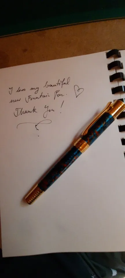 Как в описании и на фото. Очень красиво. Более сложно по весу, может быть лучше для мужчины или женщины с большими руками, очень красивый наполнитель. Спасибо. Я рад. Отличный инструмент для письма. Хорошее качество. Красиво.