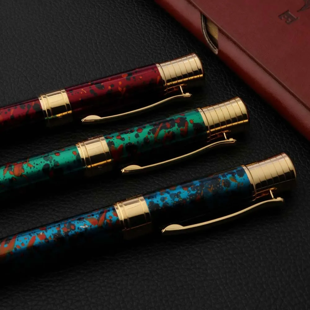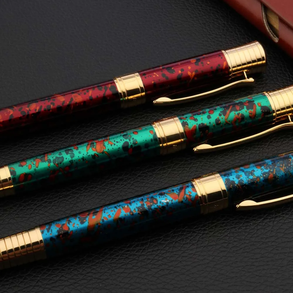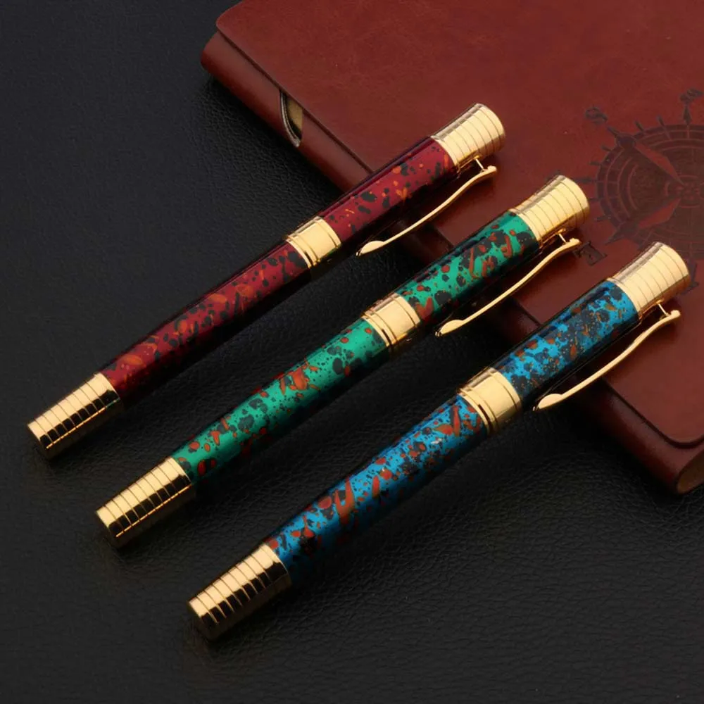 Металлическая перьевая ручка с ледяным цветком, синяя, зеленая, красная, золотая, средняя перьевая