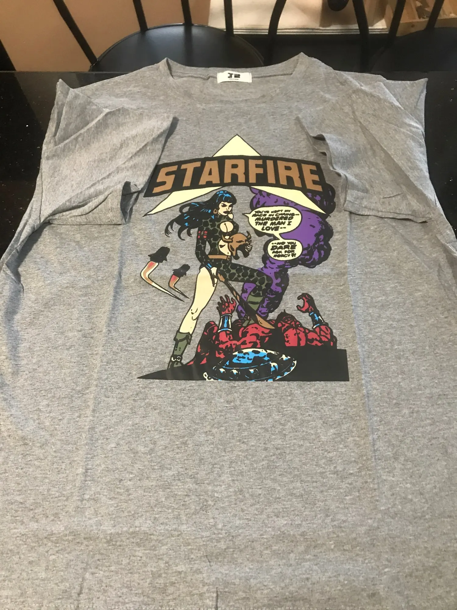 Размер как мужской размер M. Принт выглядит хорошо и качество тоже.