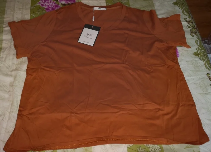 Футболка женская повседневная с V-образным вырезом, размера плюс хлопок, топ для девушек, 7 цветов, 5XL, лето
