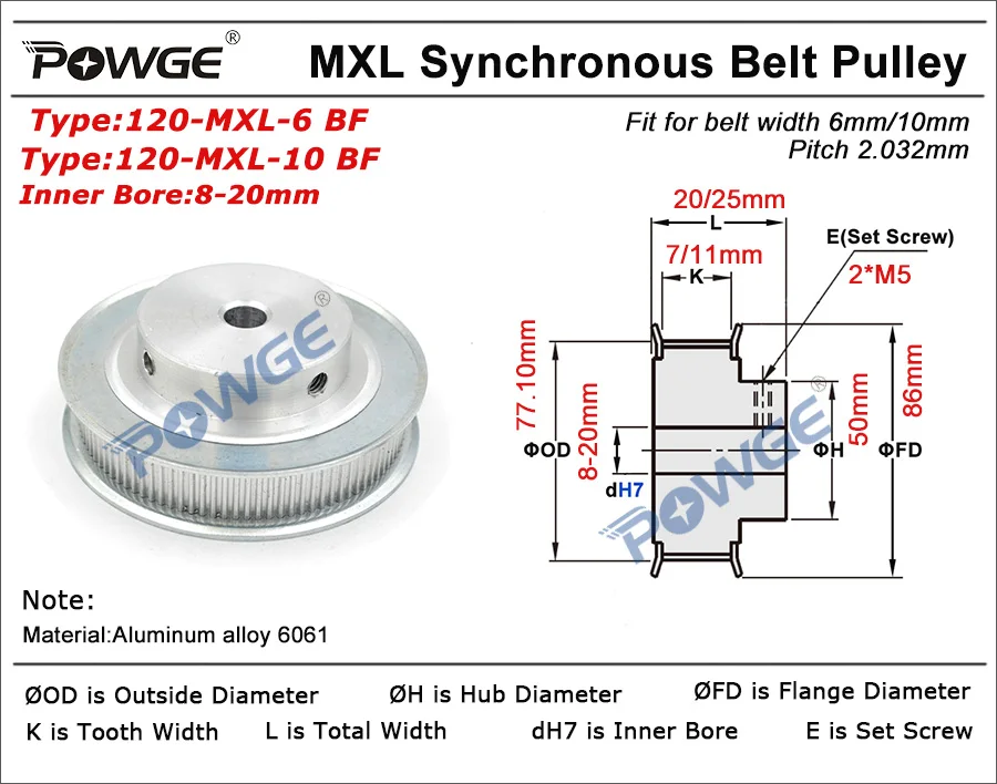 POWGE дюймов трапециевидная 120 зубы MXL Зубчатый шкив Диаметр 81012 мм для шириной 6 мм 10 мм по методу синхронного ремня Шестерни колеса 120 зубов 120 T
