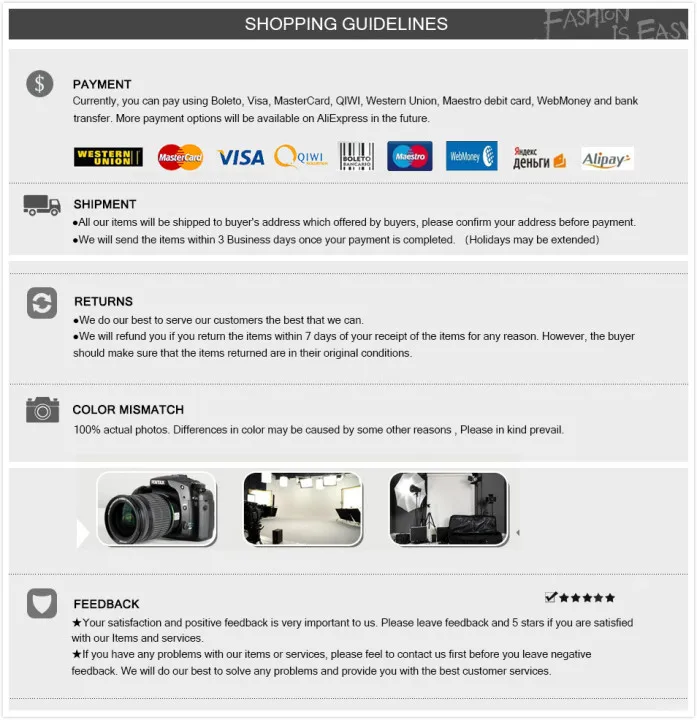 2. Из-за разницы между различными дисплеями изображение может не отражать фактический цвет товара. Большое спасибо!