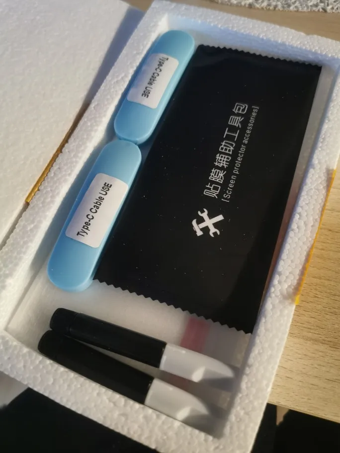стекло без черных рамок,это круто, в комплекте лампа но нет кабеля (кабель кстати нужен Type-c). Наклеек для заклейки отверстий 6 штук и 2 штуки для снятия пыли с экрана. Сам клей давольно таки вонючий. Стекло приклеил,вроде держится надёжно.