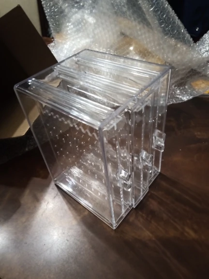 Сначала я был очень рад получить эти коробки, но затем я обнаружил, что один из них пришел ко мне сломанный на углу и внутри. Все части были внутри полиэтиленового пакета, и то, как он был сломан, подтвердило, что он разбивается каким-то тяжелым, это может храниться сверху в хранилище продавца или с тяжелой коробкой во время путешествия. Упаковка была красиво упакована, что делает меня тем, что, возможно, она была сломана перед отправкой. Так или иначе, я получил разбитую коробку и забавную часть, что она также разбилась изнутри на боковой рельсе, что позволяет помочь ящику скользить .. Я просто не понимаю, как это возможно. Попросите частичный возврат средств в списке, но не радуйтесь тому, что внешний вид товара не является безупречным. Очень видимый. Очень расстроен.