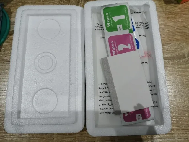 15 октября заказала, 20 ноября забрала на почте. Шла посылка чуть больше месяца. Набор стандартный, салфеточка, скребок. Можно посмотреть обучающее видео как клеить плёнку. В этот раз я с ней справилась ловчее. Что очень порадовало, так это то что плёночка очень тонкая. Защитную плёнку когда сняла, даже не сразу поняла осталась резиновая или нет. Но остались небольшие заломы на местах сгиба, надеюсь что разгладятся через пару дней. В целом рекомендую.