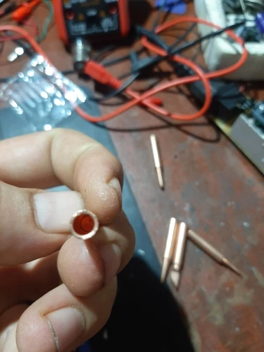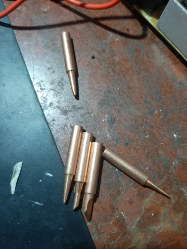 отличные медные жала!!!не сравнить с теми железными у которых теплопередача раз в 6 меньше!!сразу плавят тугоплавкие припои!!а еще и кислотой можно паять не боясь попортить жала!!вообщем доволен !!рекомендую жала!!магазин и продавца за быструю отправку и доставку!! 5+ звезд!!