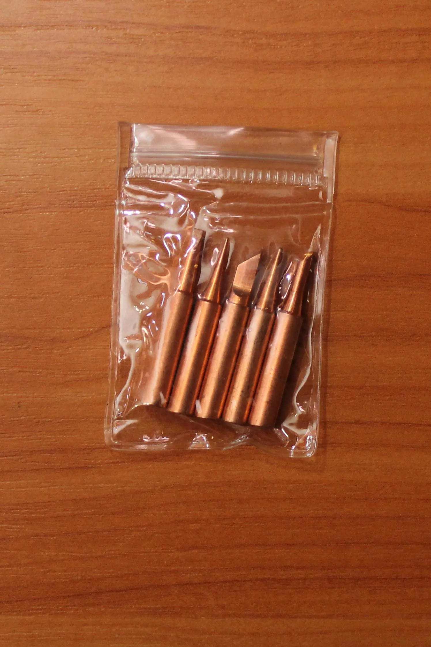 Хороший набор медных наконечников. Паять удобнее чем стальными. Доставка почти 3 недели. Трек отслеживается. Рекомендую.