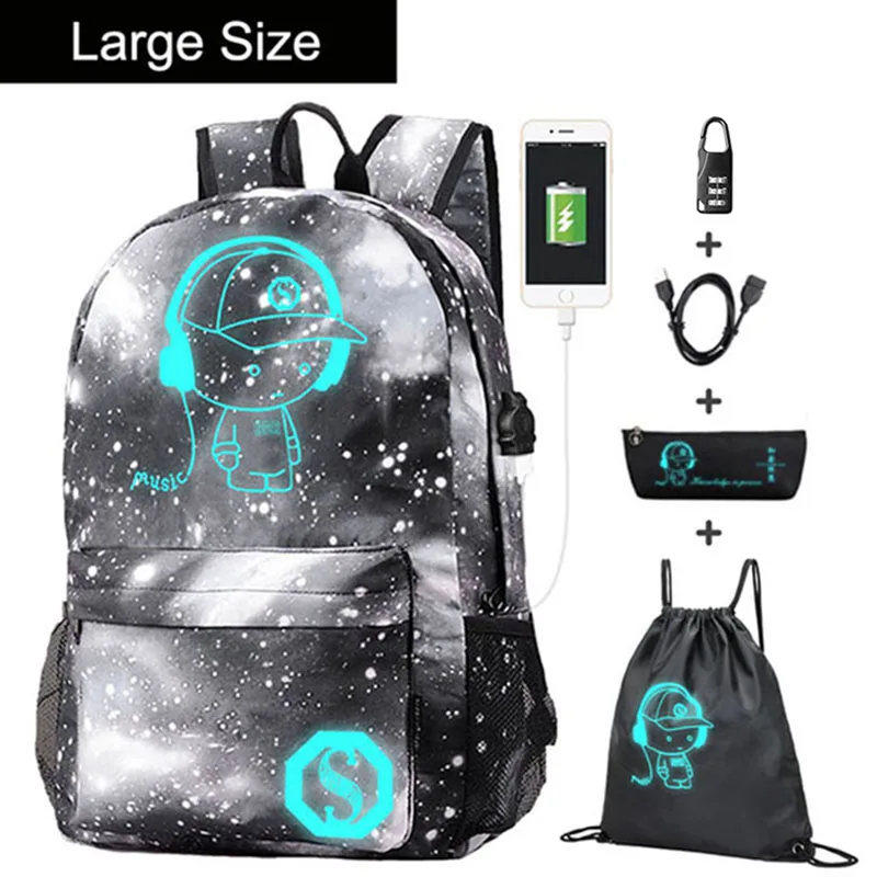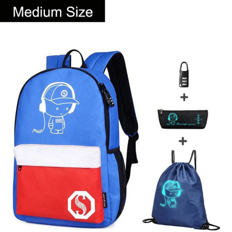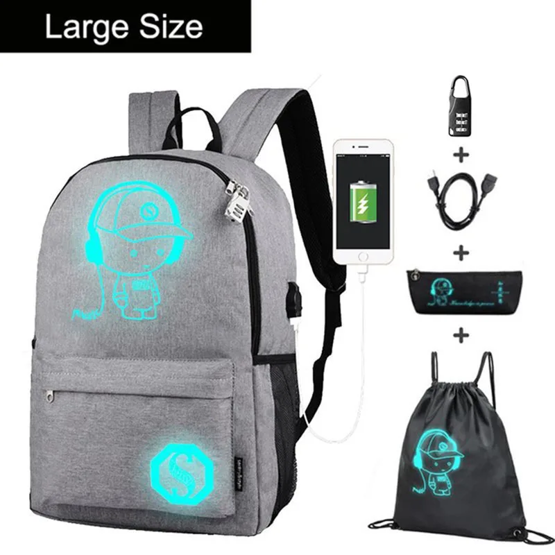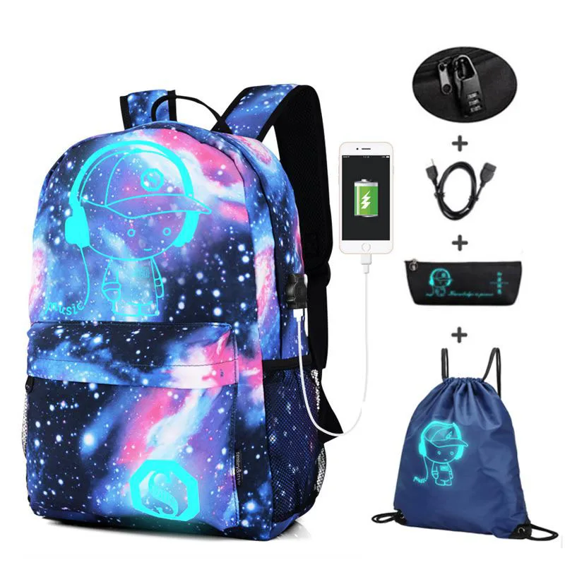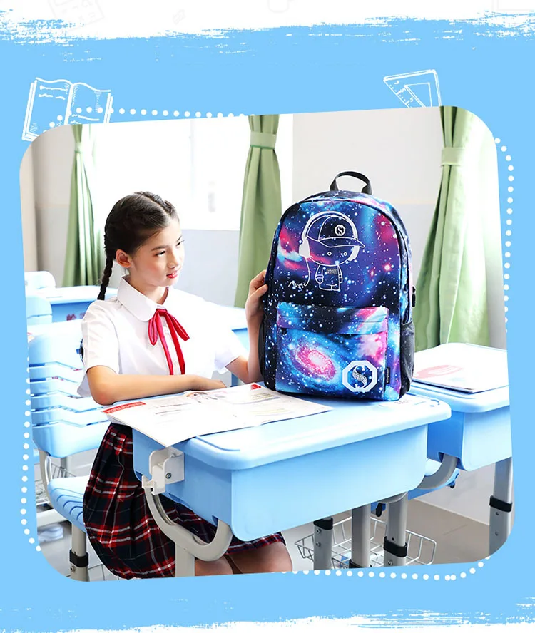 Светящийся школьный портфель с защитой от кражи, водонепроницаемый рюкзак для мальчиков и девочек, многофункциональная сумка для книг с USB-портом для зарядки