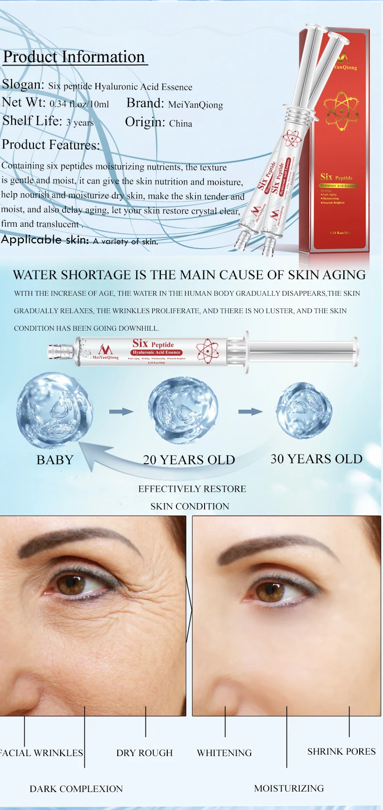 Антивозрастная сыворотка для лица с гексапептидом, гиалуроновой кислотой, против морщин, укрепляющая сыворотка для лица, увлажняющая, разглаживающая, Подтягивающая кожу, 10 мл