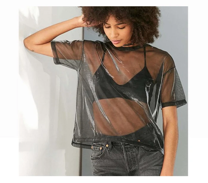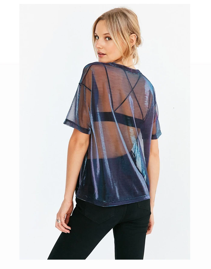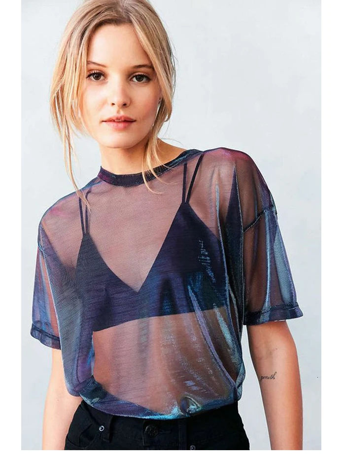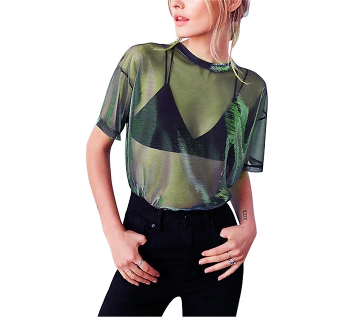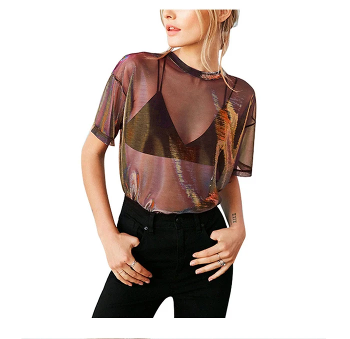 Женская прозрачная сетчатая блузка, Повседневная прозрачная блузка с коротким рукавом, винтажные топы, лето 2019