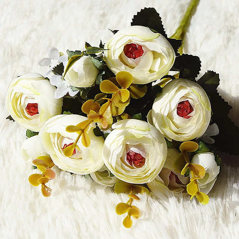 10 шт.1 букет шелковых чайных роз, букет невесты на Рождество, свадьбу, Новогоднее украшение, искусственные растения, искусственные цветы