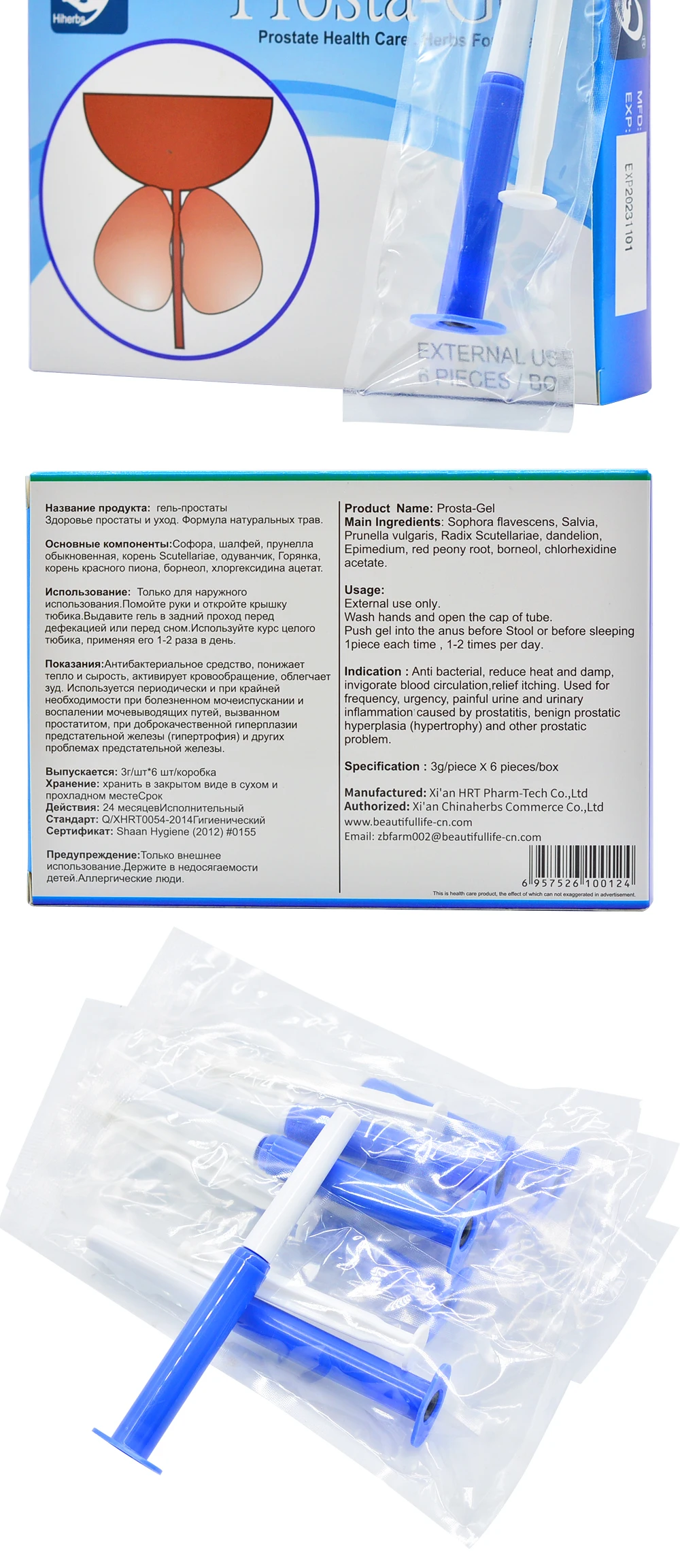 В комплект входит: 3 упаковки = 18 шт. Гель для лечения простаты на травах