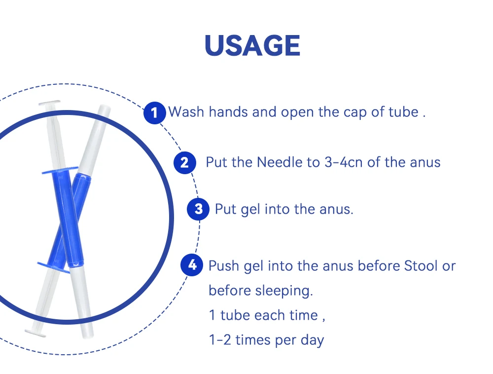 Каждую ночь перед сном осторожно вводите шприц в анус примерно на 2-5 см глубже и проталкивайте гель с помощью толкателя.