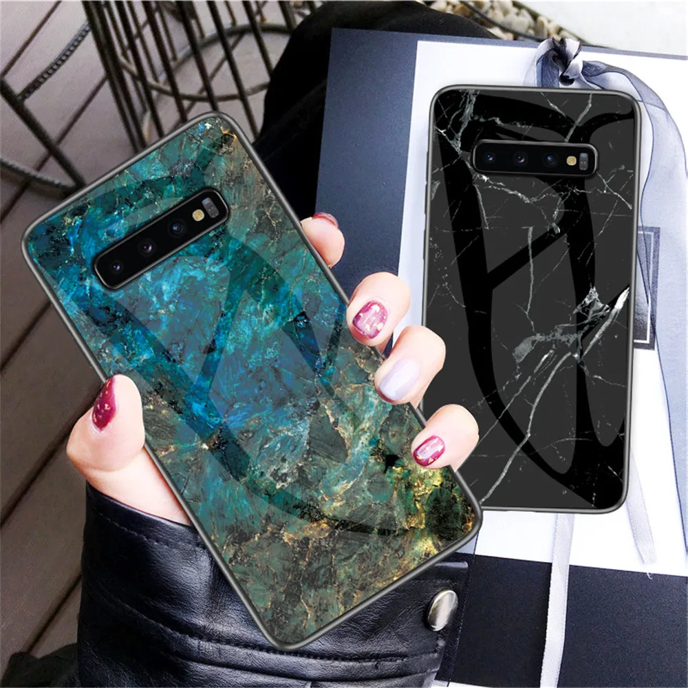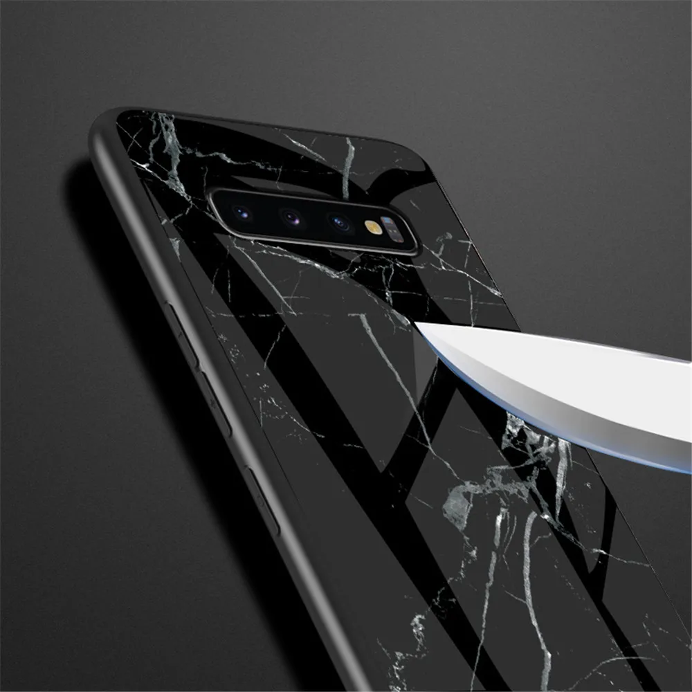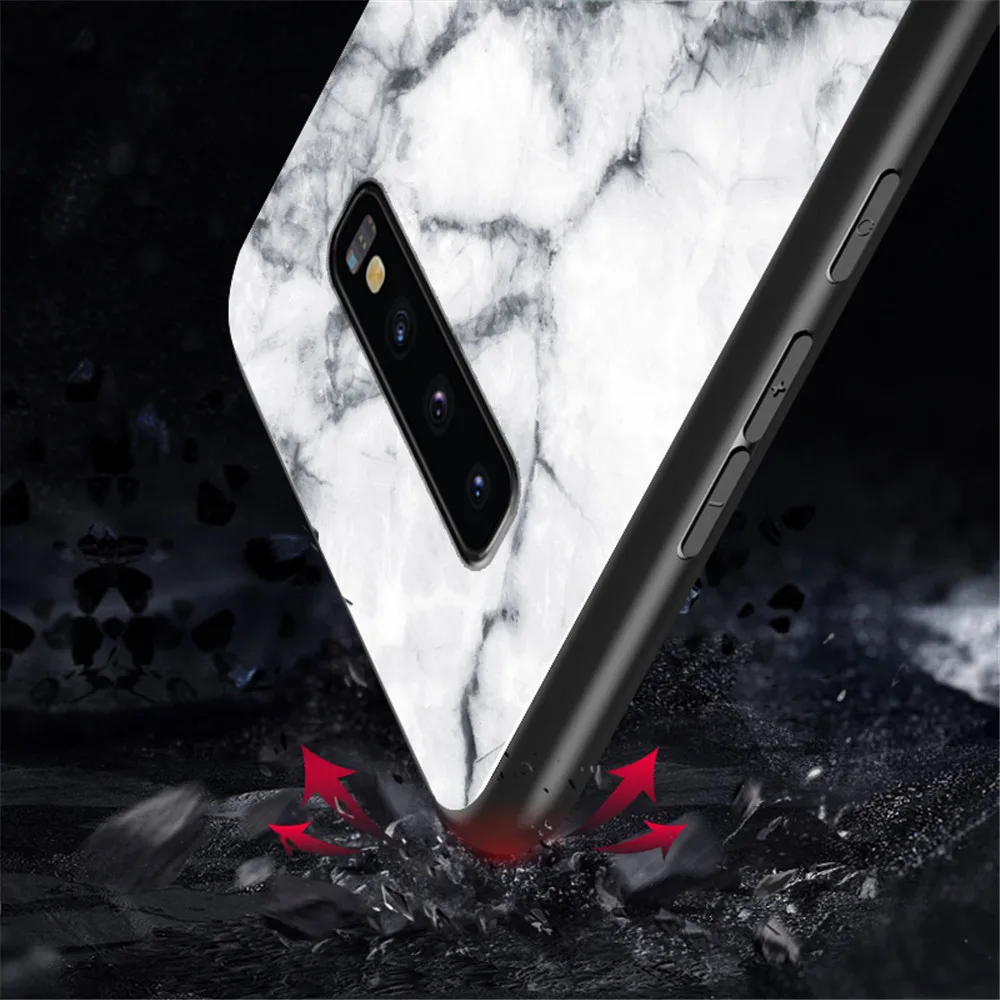 Мраморный чехол для Samsung Galaxy S10E S10 Plus, чехол из закаленного стекла, мягкий силиконовый чехол для Galaxy A10 A20 A30 A40 A50 A60 A70, чехол